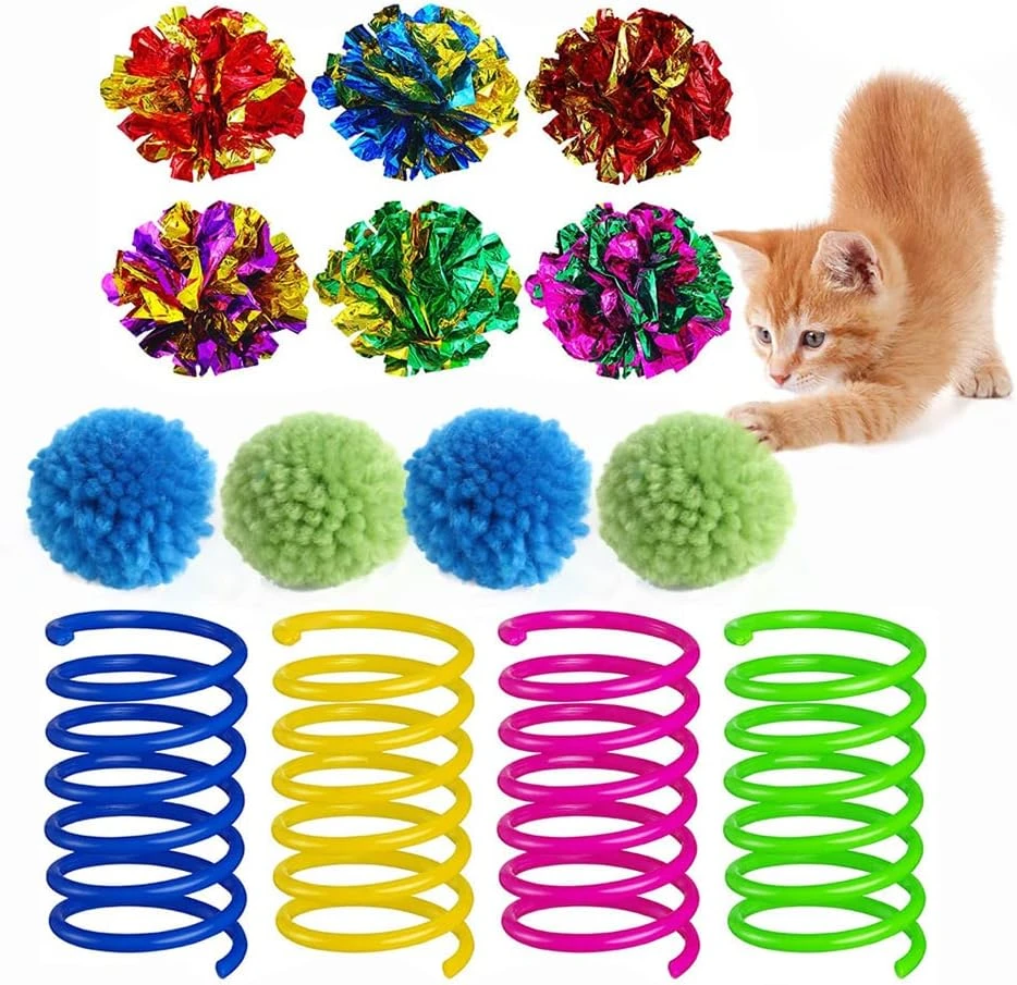 - 4 Pièces Chat Spirale Printemps De Noël Jouets Assortiment Couleur Glitter Balls Sparkle Petit Pom Pom Balls Coloré Chaton Crinkle Toys Cat Mylar Balls avec Rustle Sound pour Chats Chatons Jouer Interaction…