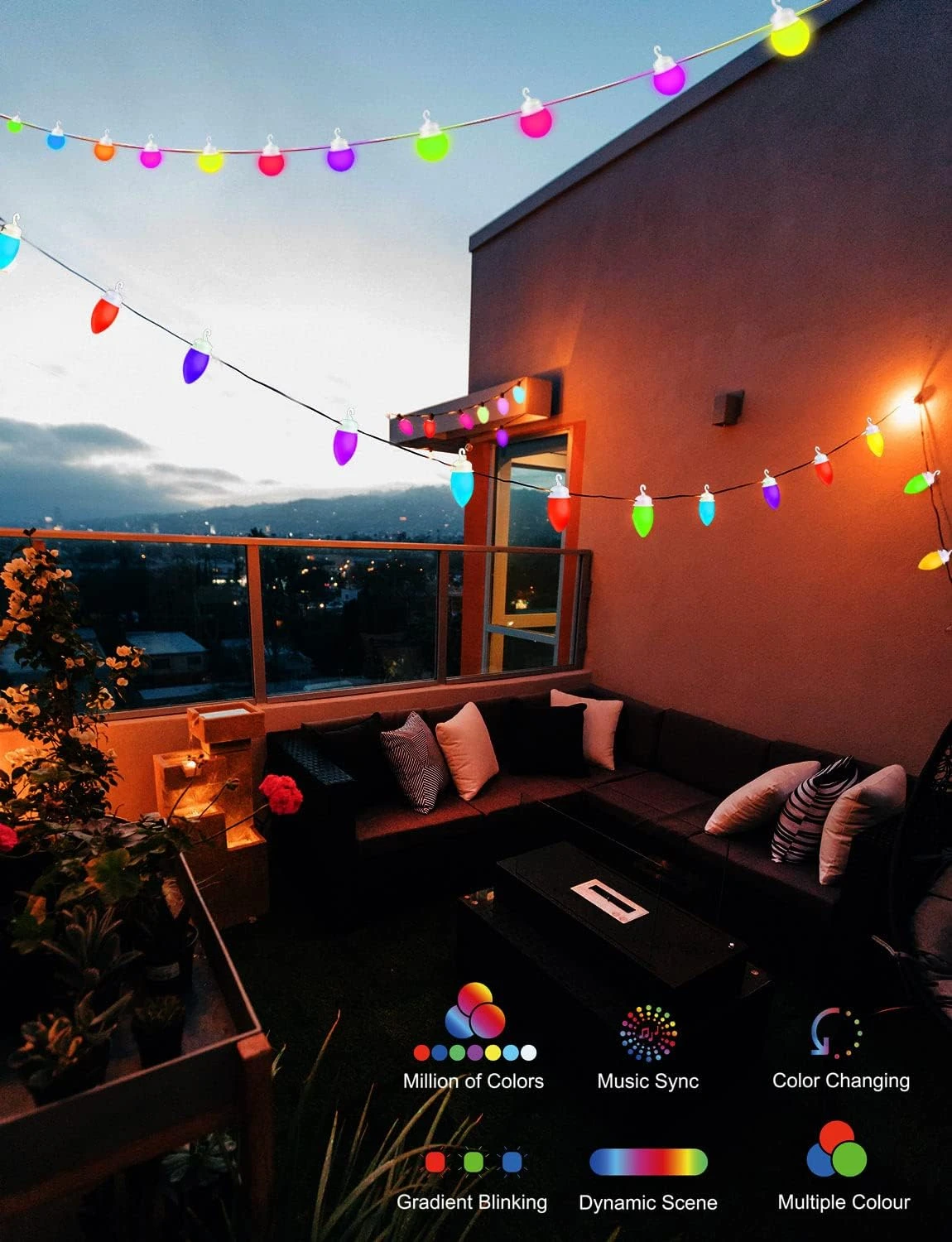 - IP65 Waterproof: Profitez des lumières de patio intelligentes toute l’année, peu importe la météo. Le matériau d’ampoule de Noël étanche en plastique conçu est également incassable pour survivre aux chocs et aux chutes. Veuillez noter que le contrôleur n’est pas étanche.C9 Christmas String Lights