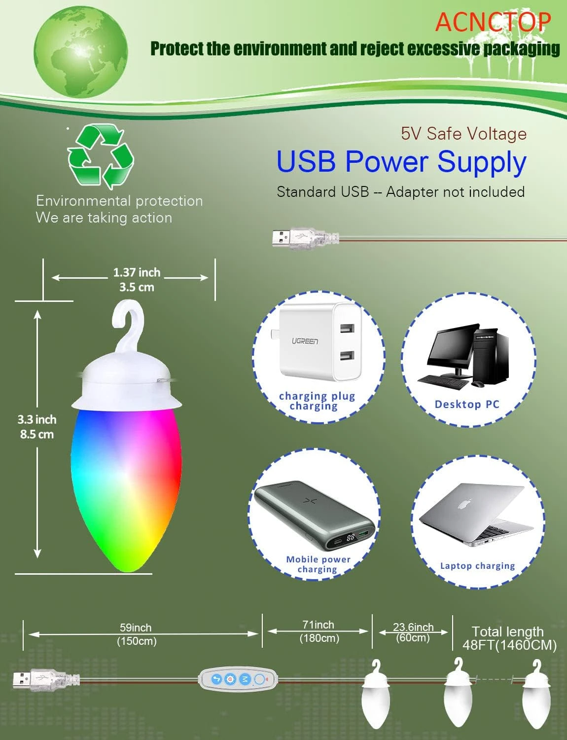 - Facile à installer:Standard USB tension de sécurité, banque d’alimentation, chargeur, alimentation d’ordinateur, etc. Conception de crochet, facile à installer Décorez votre patio, pergola, gazebo, auvent, porche, jardin, cour, piscines, fête même intérieure comme café, bar et salle de bains.