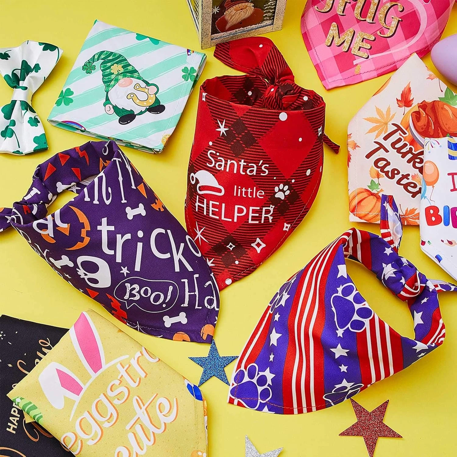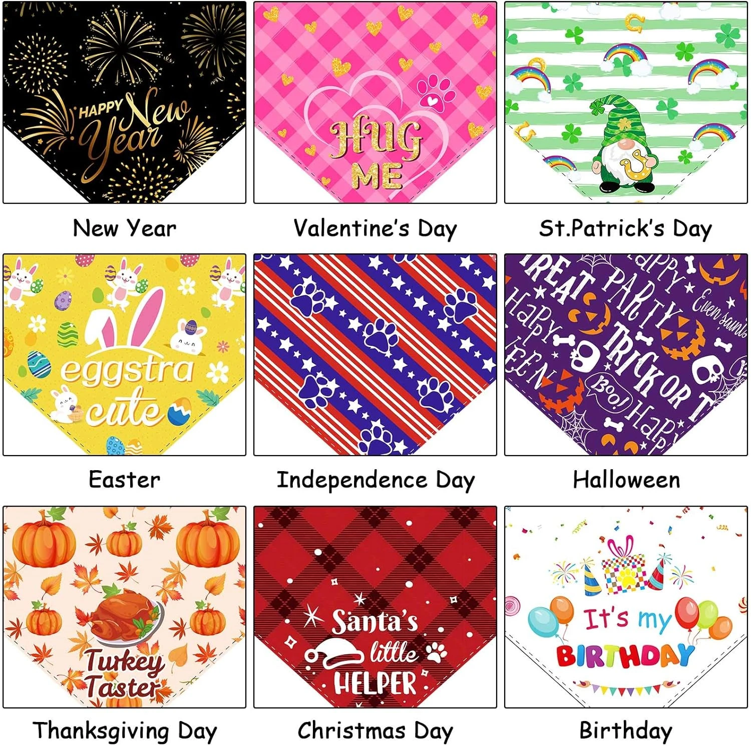- Le forfait comprend: il est livré avec 9 morceaux de bandanas de chien de vacances avec 9 thèmes, chaque style peut bien correspondre et habiller votre chien, et, assez de quantité et de styles sont pour votre animal de compagnie en port quotidien ou de vacances