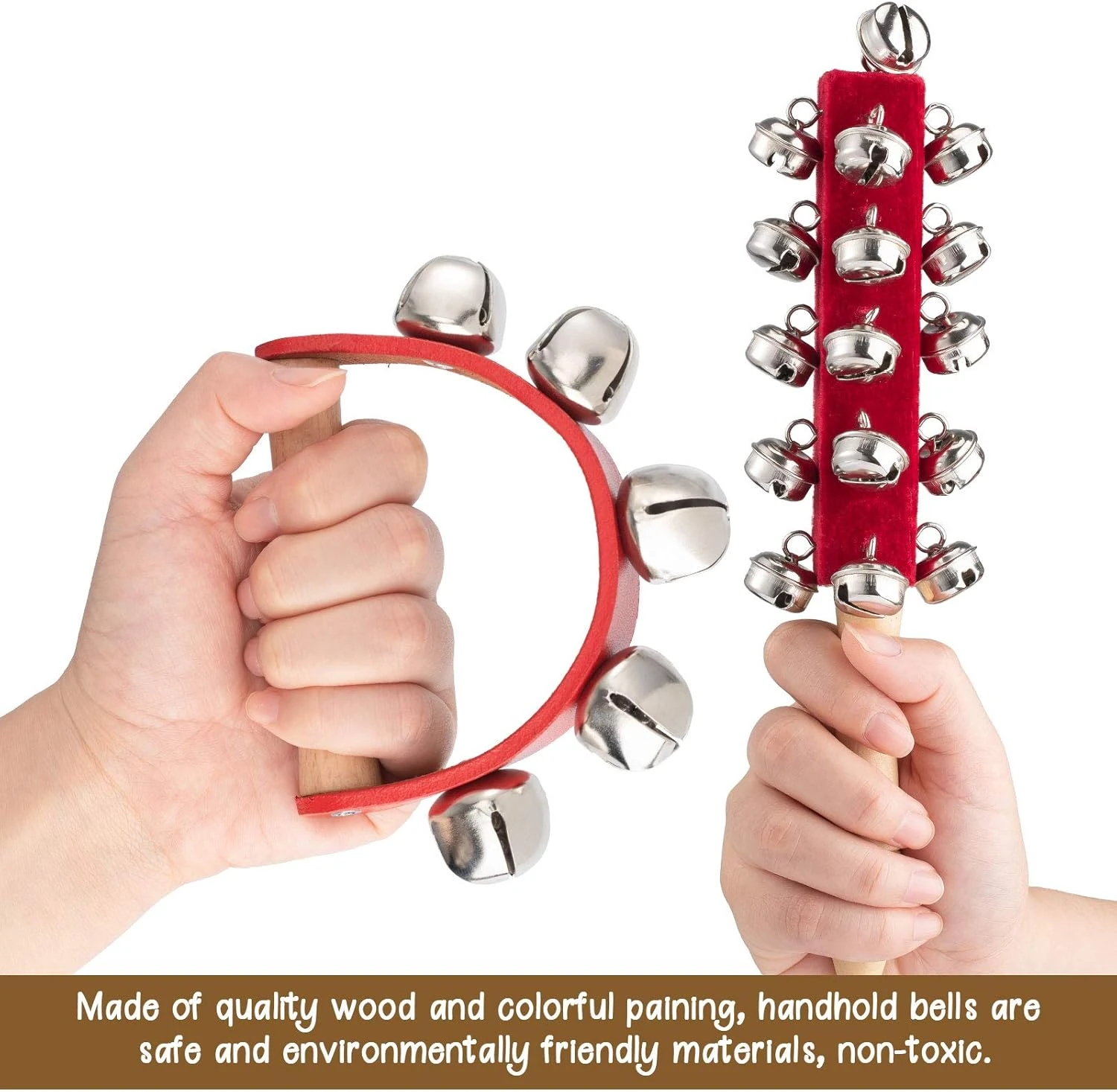 - MATÉRIAU SÛR: Fait de bois de qualité et de peinture rouge, les cloches de la main sont des matériaux sûrs et respectueux de l’environnement, adaptés aux enfants et aux adultes.