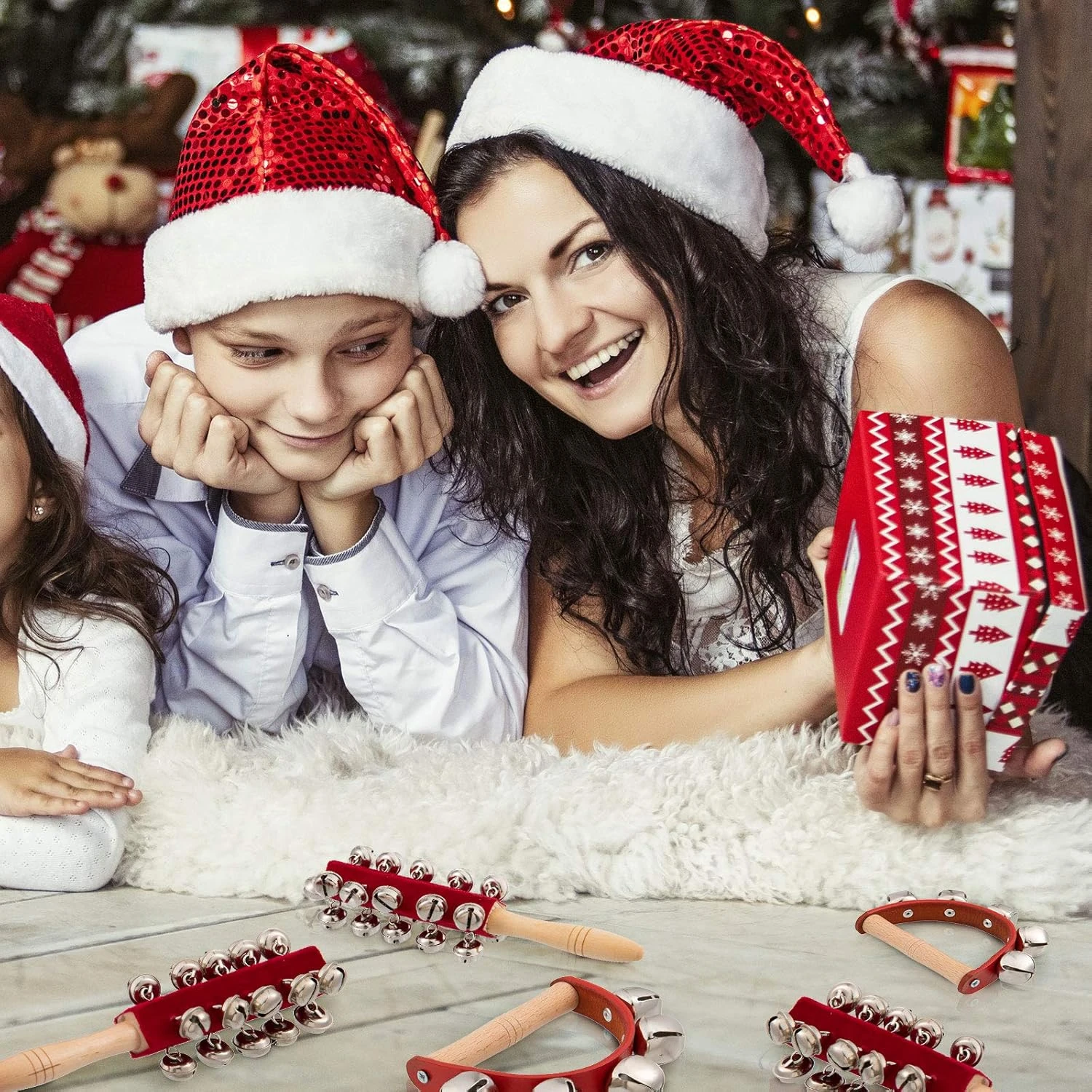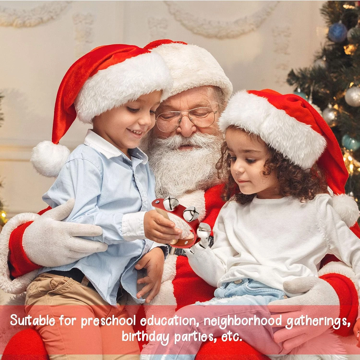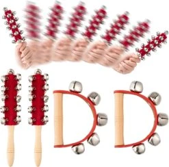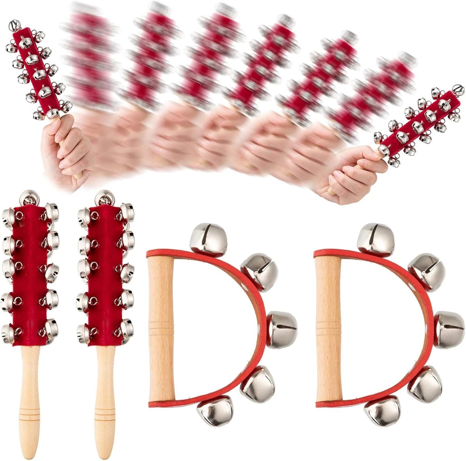 - LE PAQUET COMPREND: 4 pcs mains jingle cloches en 2 modèles. Chaque longue cloche à main a 10 cloches, et la cloche semi-circulaire a 5 cloches sur chacune, à venir avec une poignée en bois à la main.