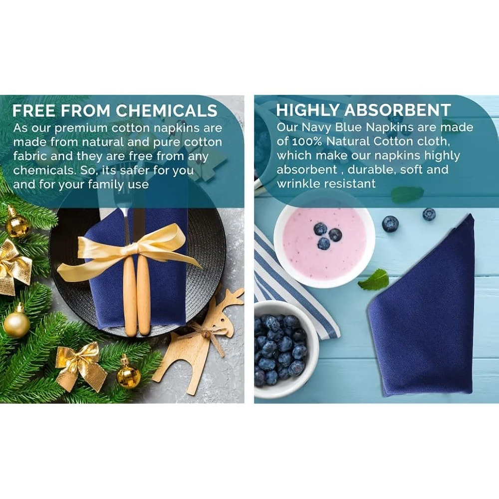 - 【DURABLE & SOFT】 : Nos Serviettes Bleu Marine sont faites de tissu 100% Coton Naturel, qui rendent nos serviettes très absorbantes, durables, douces et résistantes aux rides. Ces serviettes en tissu de coton dureront assez longtemps et ne perdront pas leur douceur. Aussi parfait pour la pendaison de crémaillère, action de grâce et cadeaux de Noël.