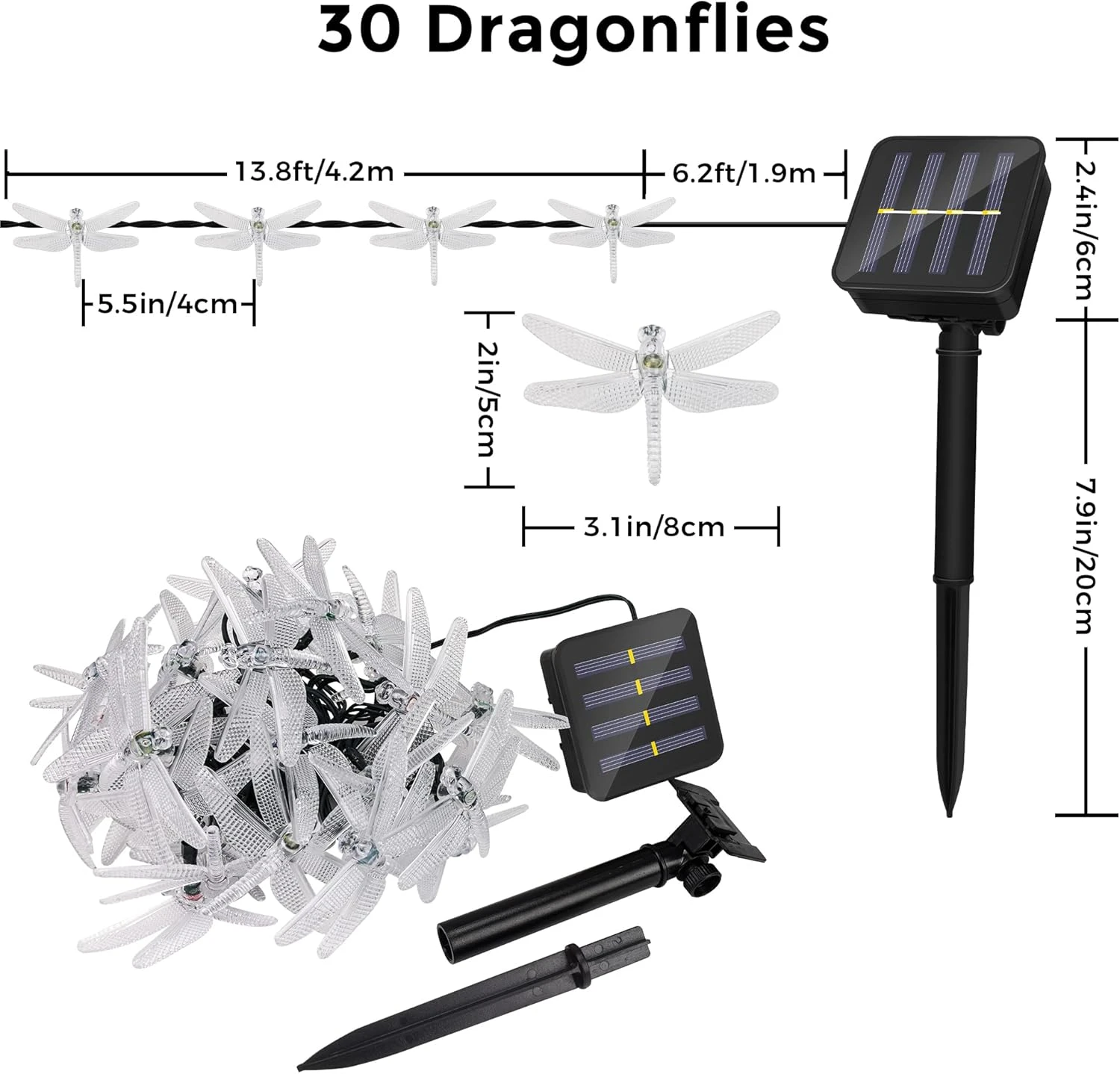 - WATERPROOF DRAGONFLY STRING LIGHTS — Apparence spéciale de libellule et design étanche IP65, s’adapte parfaitement à votre jardin/patio. Nous fabriquons cette corde de lumières qui possèdent la chaleur de la nature humaine et la fraîcheur de Mère Nature, avec le cœur.