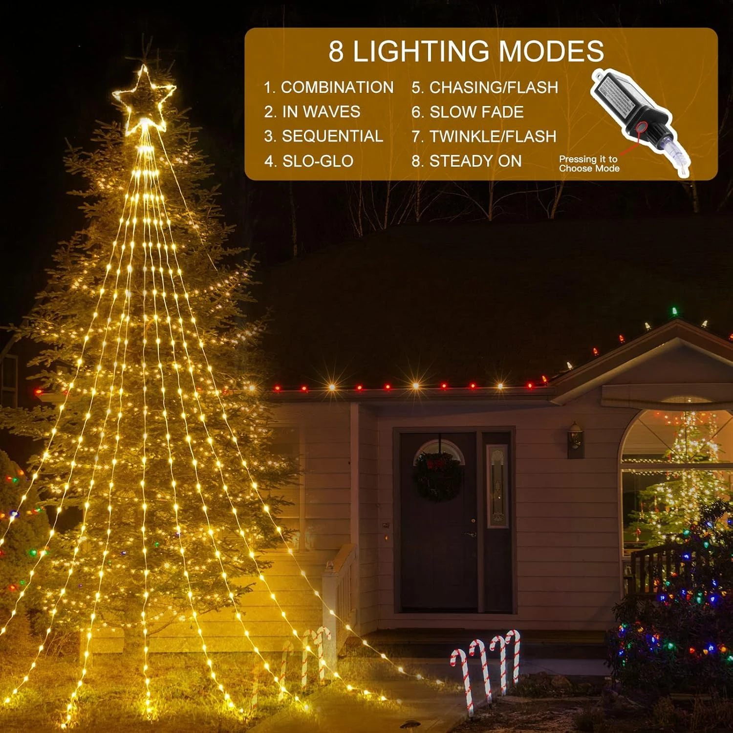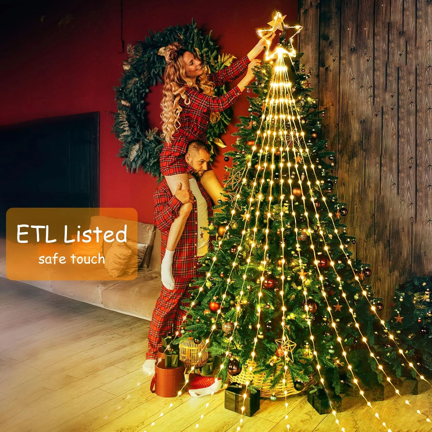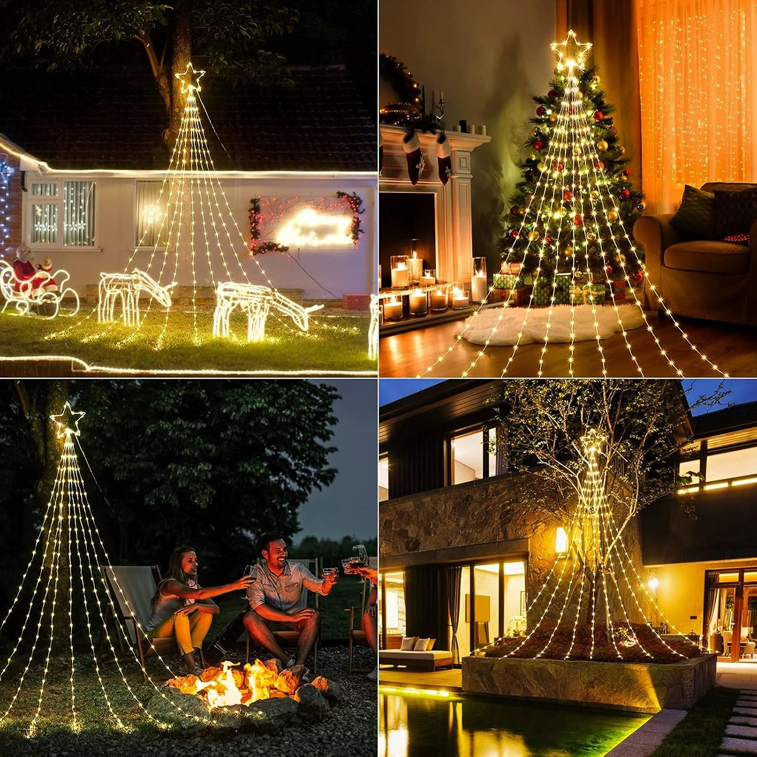 - Fantastique décoration: 10Feet 290 LED 9 gouttes d’eau de guirlandes de fées avec 11 pouces topper étoile, vous apportant dans le monde féerique avec des lumières blanches chaudes étoilées, création d’une ambiance chaleureuse et de festival pour votre maison, 1 corde suspendue et 9 pointes au sol inclus, parfait pour une utilisation en extérieur, 16.4Feet longueur de plomb, longueur,vous permet de décorer votre maison n’importe où dans la plus grande mesure