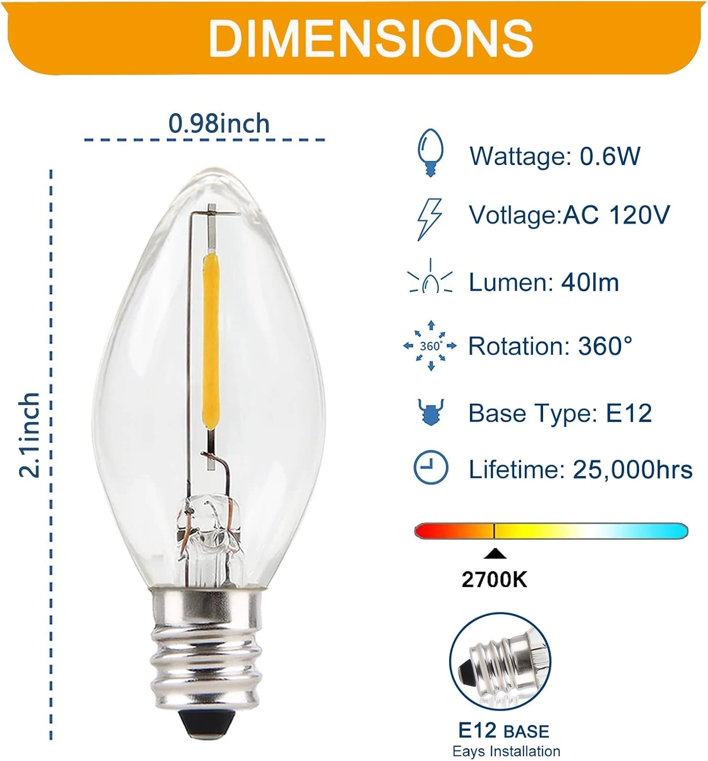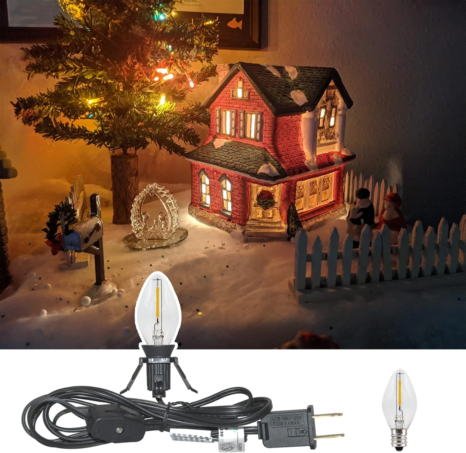 - Blanc chaud avec Clip Ampoule:Avec ampoule LED C7, ampoule 120V/0.6W, 2700K blanc chaud doux. Lumière accessoire pour apporter de la lumière à votre sapin de Noël en céramique, maison, décorations de vacances