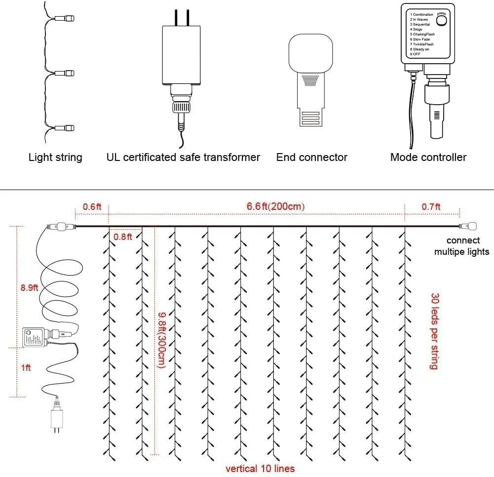 - Facile à utiliser: branchez-le directement et débranchez-le pour l’allumage et la désactivation de l’alimentation. Sortie standard américaine, tension 110. Contrôleur des lumières LED: 8,9 pieds, brancher sur le contrôleur: 1 pi.