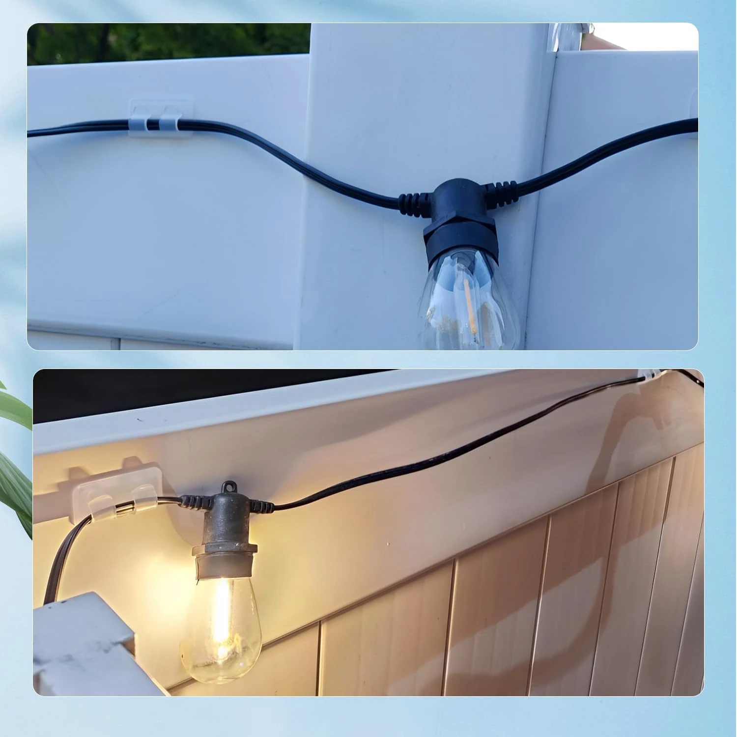 - Conception améliorée de Double Clips: Ces agrafes lumineuses extérieures comportent une conception de double agrafes pour l’adhérence améliorée, tout en fournissant un plus grand secteur adhésif pour les crochets collants extérieurs, s’assurant que vos lumières de ficelle restent fermement attachées.