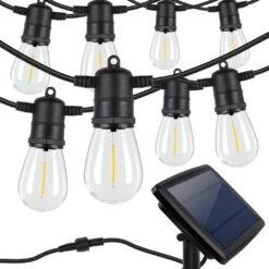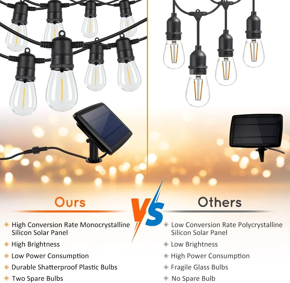 - IP65 Étanche et incassable: Nos lumières solaires durables de chaîne s14 extérieures peuvent résister à la météo dure comme la température élevée, la pluie et la neige, vous pourriez les employer pendant longtemps, un éclairage extérieur décoratif idéal pour votre piscine, parasol, marché, dîner, réunion de famille, barbecue et banquet