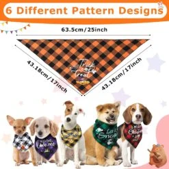 6 Pcs Automne Chien Bandana Halloween Thanksgiving Vacances Plaid Noël Chiot Bandana Triangle Animaux Bavoirs Écharpe Foulard Cadeau Accessoires De Fête Pour Petit Moyen Grand Chien Chiot Chat Costume
