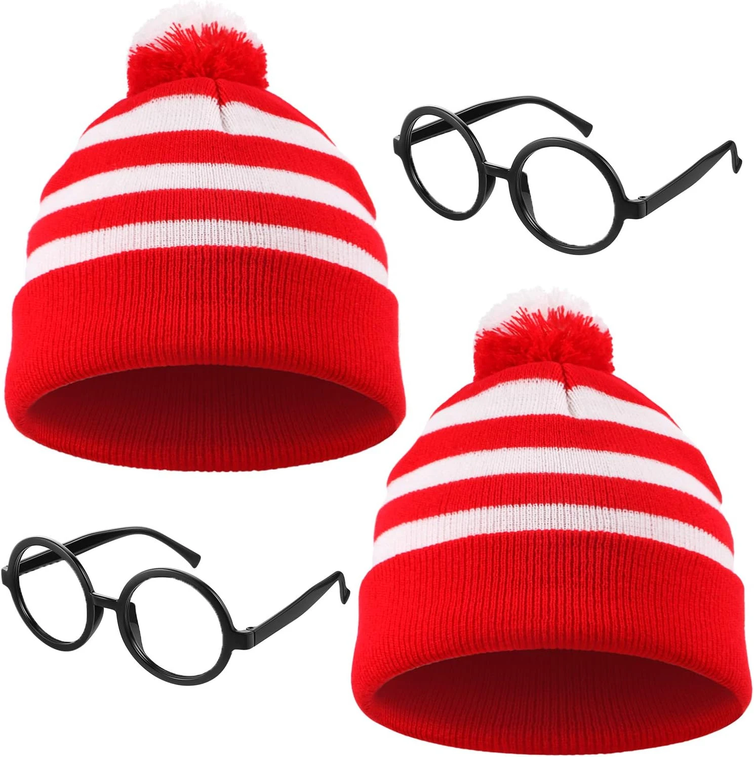 - Le forfait comprend: venez avec 2 pièces de chapeau en tricot blanc rouge et 2 paires de lunettes noires assez de quantité pour répondre à votre utilisation cosplay, ils sont également de bons choix de cadeaux pour vos amis, membres de la famille et autres personnes