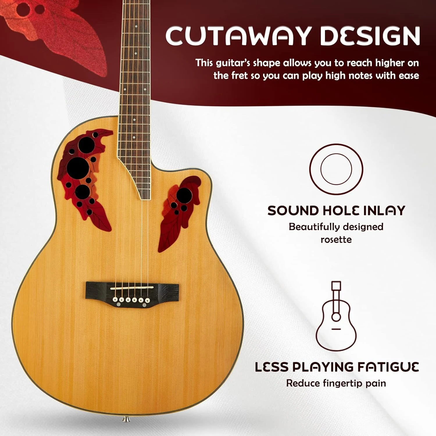 - ?Artisanat exquis: En vedette avec épicéa sélectionné pour le haut, dos et côtés en acajou vous apporter un son plus riche et plus lumineux. Peinture de pulvérisation de couleur noire exquise et facile à nettoyer et à conserver. Toutes les guitares acoustiques cutaway dreadnought étaient 100 pour cent faites à la main par des travailleurs professionnels et expérimentés. Un instrument solide pour durer longtemps