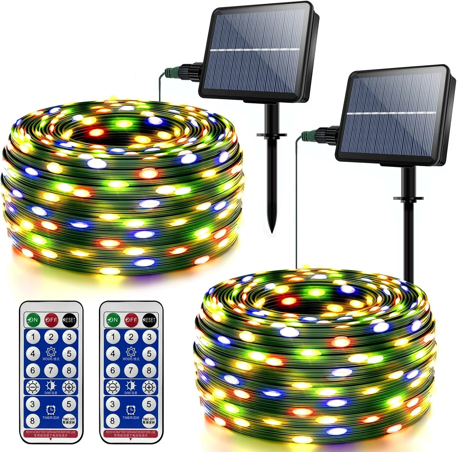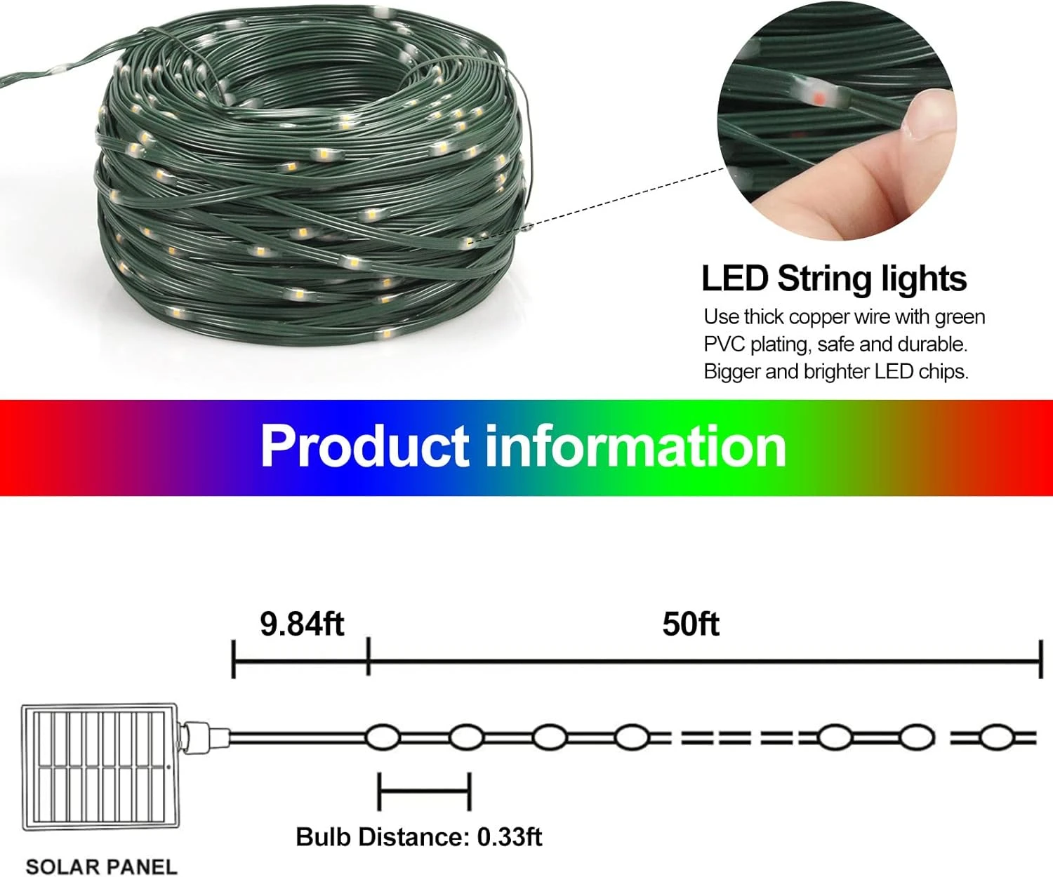 - 【2 PACK SOLAR FAIRY LIGHTS】150LED ampoules sur 50ft fil de cuivre de haute qualité, Mise à niveau avec enchevêtrement libre PVC vert corde intensifiée, perles LED enveloppées époxy, mieux imperméable à l’eau et pas facile à briser. Le câble vert foncé peut être bien caché la nuit,Vous pouvez le plier et le façonner autour de presque tout, comme les arbres de Noël, les plantes, les fleurs, le panneau, le balcon et ainsi de suite.