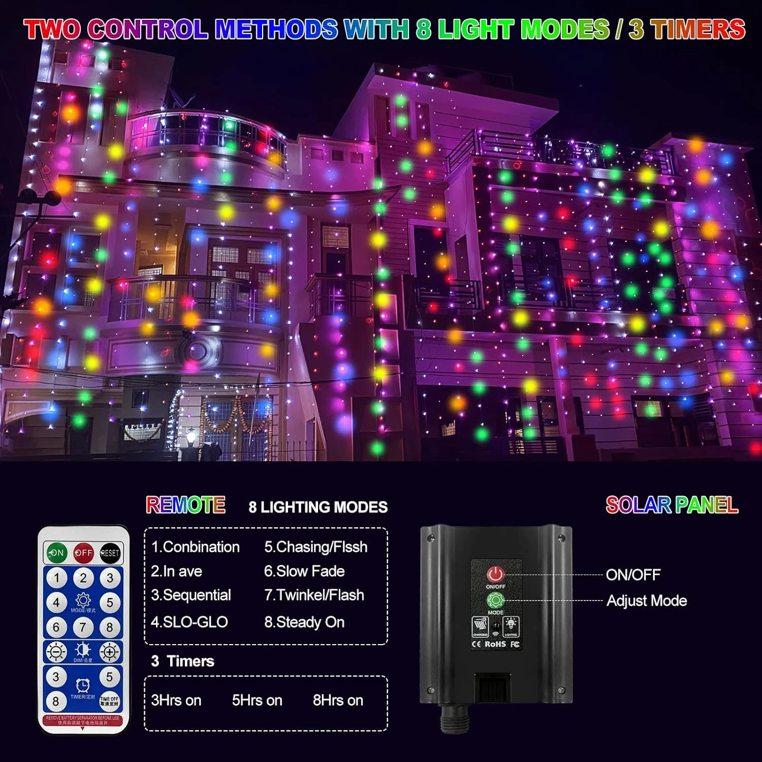 - 【4 Luminosité réglable et Timing Modes】4 niveau de 25%/50%/75%/100% peut être ajusté pour la luminosité en appuyant sur « + » et « – » sur le panneau de commande à distance des lumières de Noël Solar Outdoor. Appuyez sur le bouton “TIMER” pour régler 3,5,8 hrs. vous apporter une merveilleuse nuit pleine de lumières extérieures ambiantes alimentées par le secteur, et profiter de votre temps grâce à la prise de lumières féeriques.