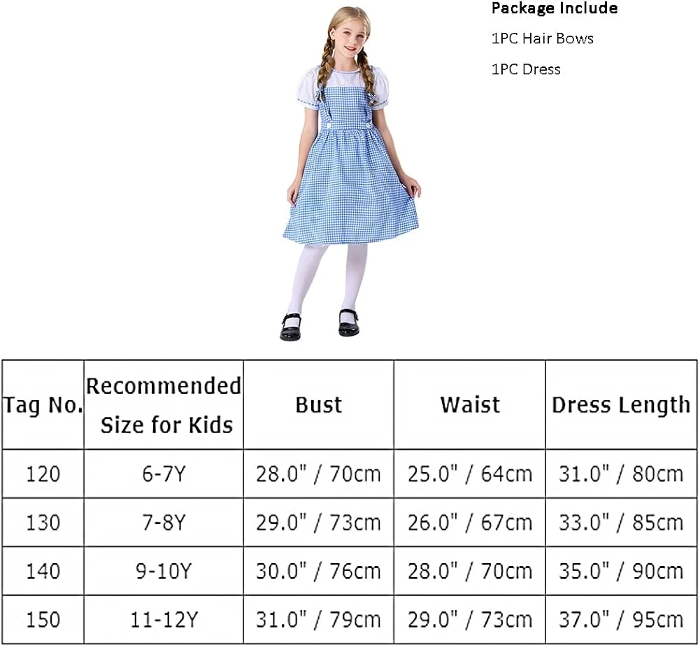 - 【Taille de corps】Fancy robe costume robe robe de bal carnaval anniversaire jeu de rôle Halloween tenue de fête adapté pour les filles de 6-12 ans et également disponible dans les tailles adultes S-3XL. Avant de commander, vous pouvez vous référer au tableau des tailles de notre magasin pour choisir la taille la plus appropriée. Ce serait un beau cadeau pour votre enfant et vous-même. Costume de robe de vichy bleu d’Halloween, vêtements d’habillage de princesse, vêtements de jeu à la maison ou tenue de fête, costumes de personnages intéressants, ajoutez un amusement à votre tenue d’Halloween!