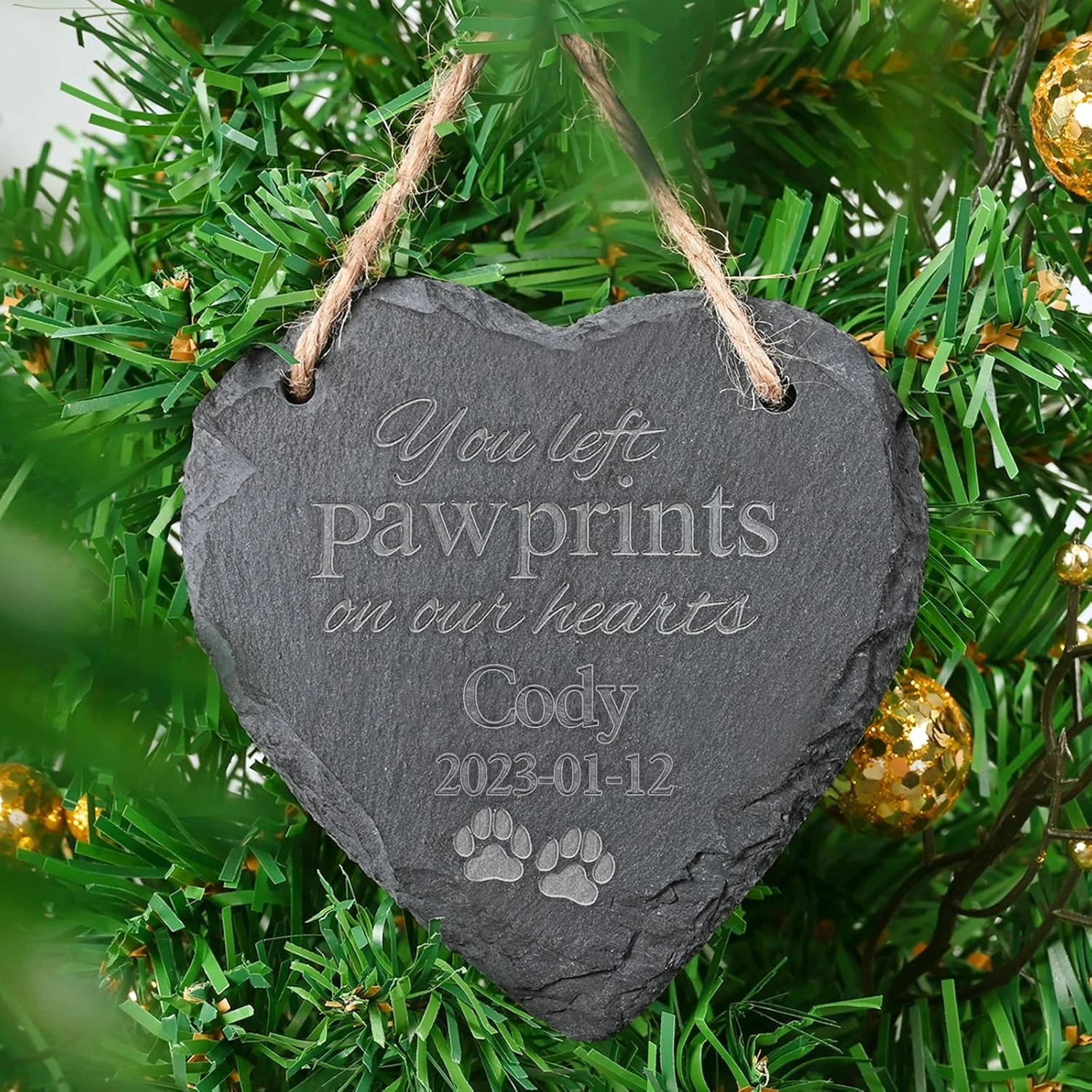 - Pet Loss Gifts: L’ornement de Noël commémoratif pour animaux de compagnie qui a gravé “vous a laissé des empreintes de pattes sur nos cœurs. ” et peut être personnalisé avec le nom et l’année. Chaque fois que vous le voyez, il vous fait penser à votre chien/chat aimé perdu.