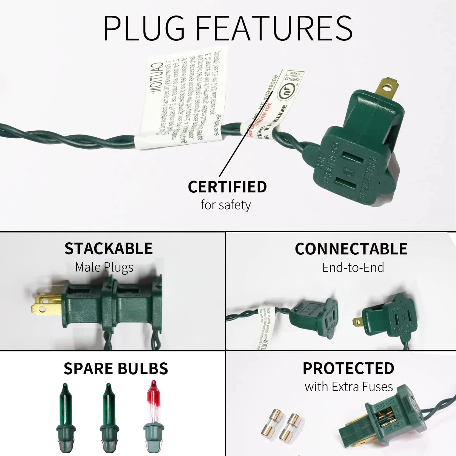 - Nature du produit:Chaque mini ensemble de lumière de Noël est livré avec une prise de bout en bout, peut être connectable jusqu’à 5 ensembles (500 lumières). Chaque espace d’ampoule 2.5in, 2.5V et 0.425W par ampoules, fusible 3A intégré pour une utilisation sûre. Des ampoules et des fusibles supplémentaires sont inclus.