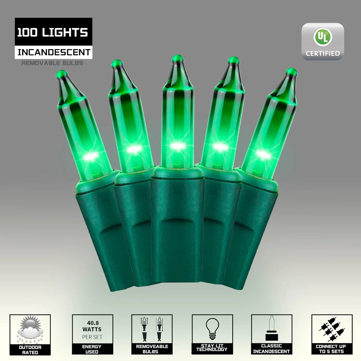 - Safty et facilement: Des produits certifiés UL de haute qualité garantissent votre sécurité et celle de votre famille, Décorer avec 100 mini lumières incandescentes vertes avec du fil vert donnera une douce sensation festive à votre Noël.