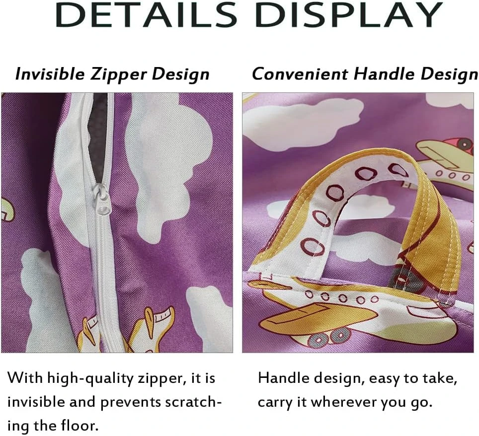- DESIGN UNIQUE: La poignée large aide à transporter des jouets de la salle de jeux à la chambre. La fermeture à glissière pratique facilite le déplacement du Toys & Filler dans et hors et la conception cachée peut empêcher la forme de blesser les enfants ou votre sol.