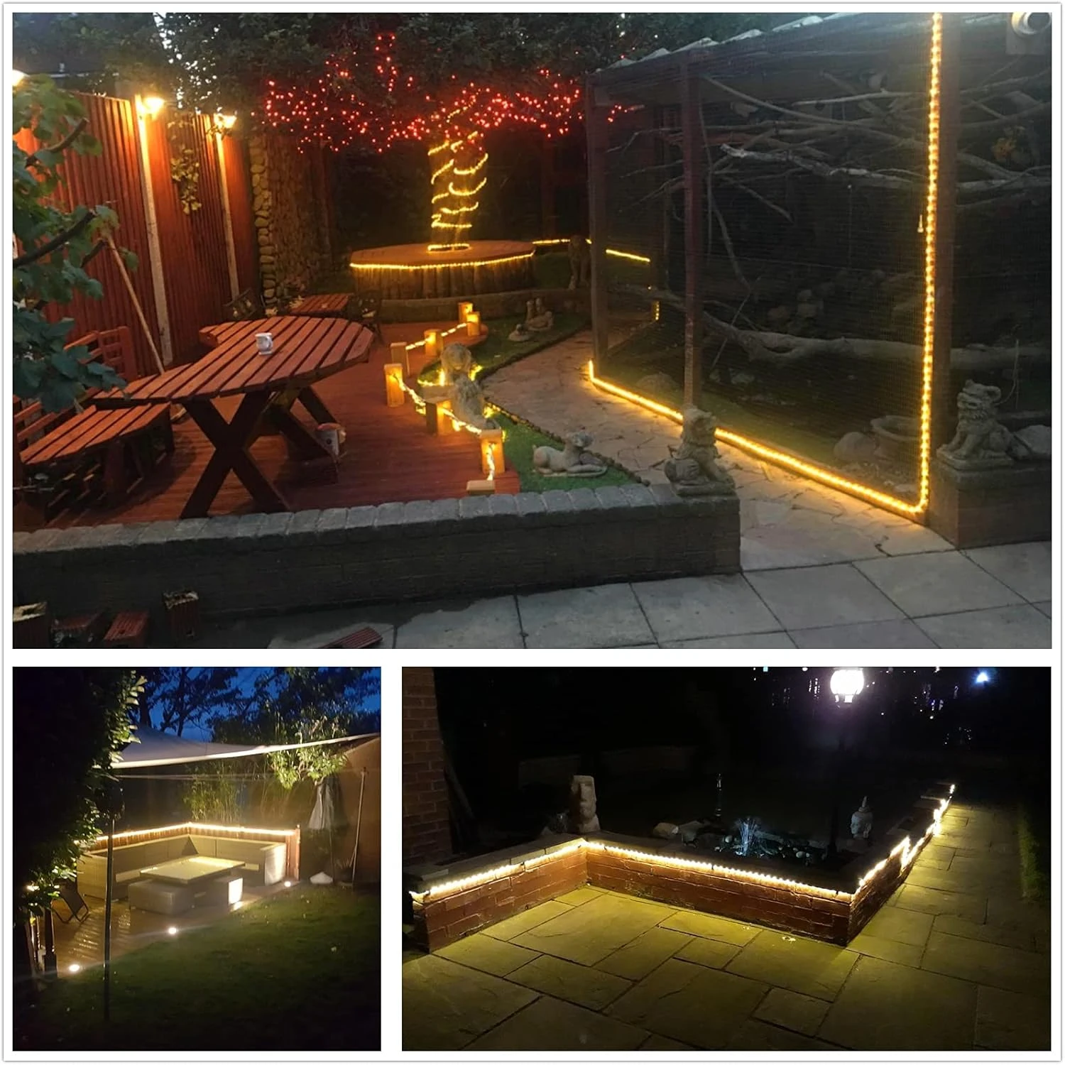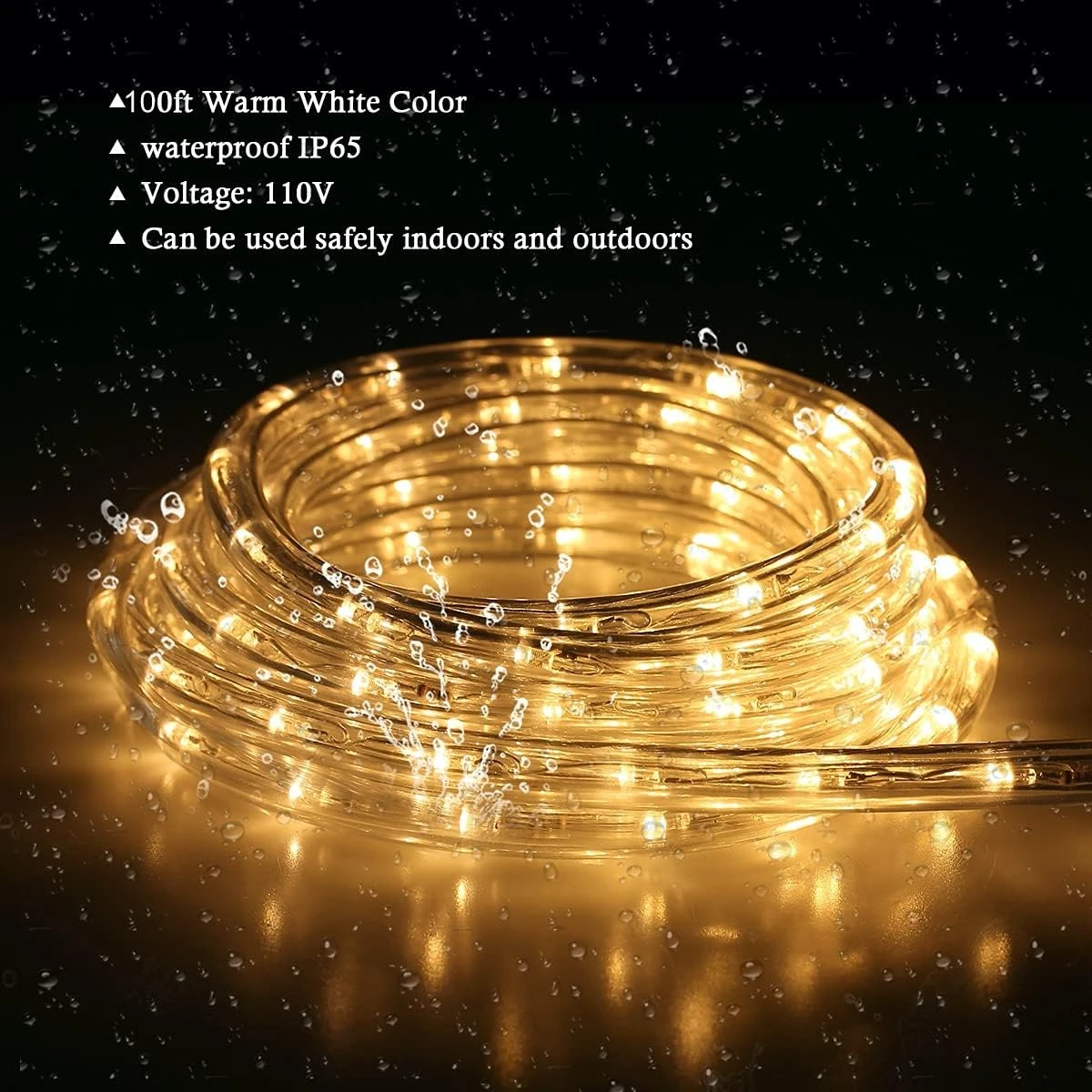 - IP65 Waterproof:Les lumières de corde à led extérieures sont IP65 imperméables, adaptées à une utilisation intérieure ou extérieure (note que la fiche n’est pas imperméable).