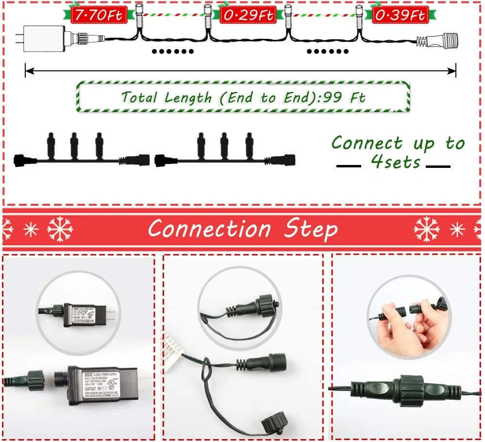 - 【UL Certified & Safe to Use】Un transformateur basse tension de nouvelle génération 29V et des lumières de Noël entières, y compris le fil de ficelle, les ampoules LED et la prise, ont été certifiés par UL pour assurer la sécurité. Conforme à la norme UL588 pour la protection de la lumière décorative de vacances/saison, très sûre à utiliser.