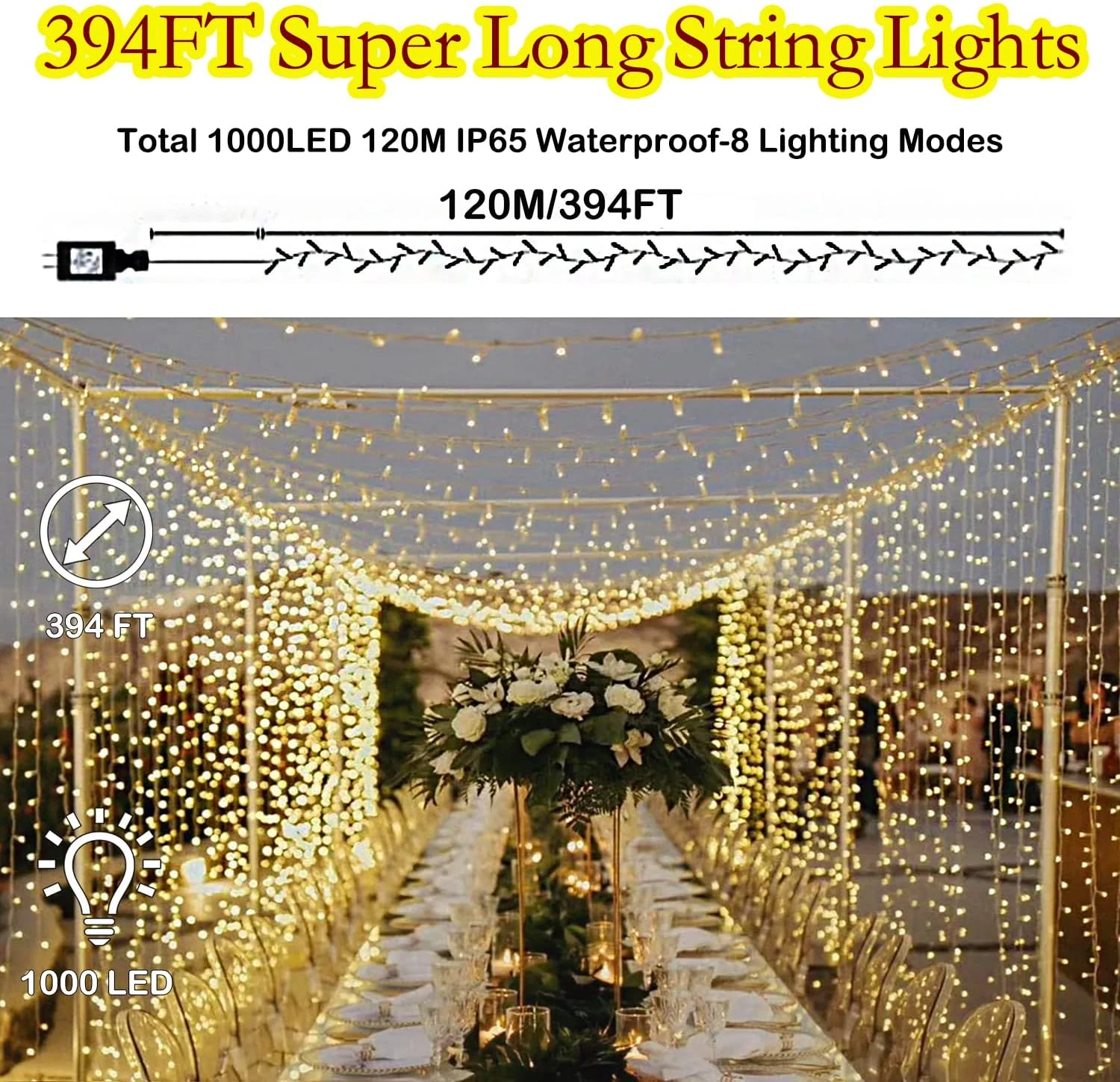 - Super Long et Lumineux: Les lumières de Noël de 394 pieds en plein air ont 1000 LED blanches chaudes, vous pouvez avoir un extra long Warm White Plug in Fairy Lights, ce qui est suffisant pour décorer tous les coins de votre maison à Noël. Il utilise des lumières de Noël à led super lumineuses avec une lumière chaude et douce pour créer une atmosphère agréable, joyeuse et unique pour Noël, Halloween, Thanksgiving, mariages, intérieur et extérieur.