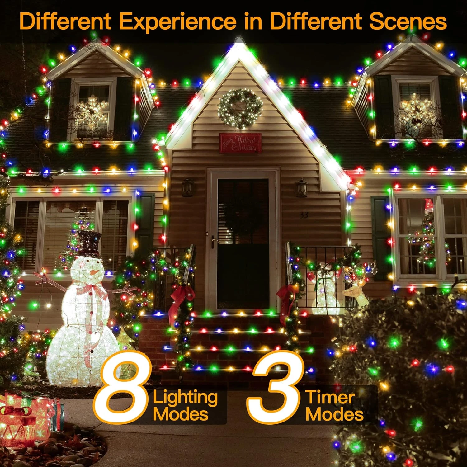 - 🌟 【 Super Bright & 8 Modes 】 600 LED lumières de Noël multicolores, la source d’éclairage à large diffusion offre des effets de lumière plus magnifiques et de rêve, lumineux mais pas éblouissants, rend les décorations élégantes et flashy. 8 modes d’éclairage différents: combinaison, en onde, séquentielle, slo-glo, flash de poursuite, fondu, flsh, stable. Parfait pour les décorations de Noël, mariage, anniversaire, fête, parc, arbres, véranda, porte, jardin, terrasse, arrière-cour, balcon.