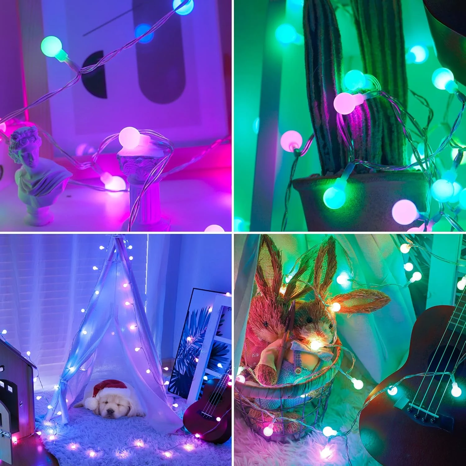 - ⛄Perfect Décoration:Attractive RGB led changement de couleur globe lumières de Noël pour décorer parfaitement chambre à coucher, salle de classe,maison,Noël, fête, club, scène, restaurant,fenêtre,hall,pub ou toute autre zone que vous souhaitez.Temps de créer une atmosphère de Noël heureux et merveilleux pour votre famille!