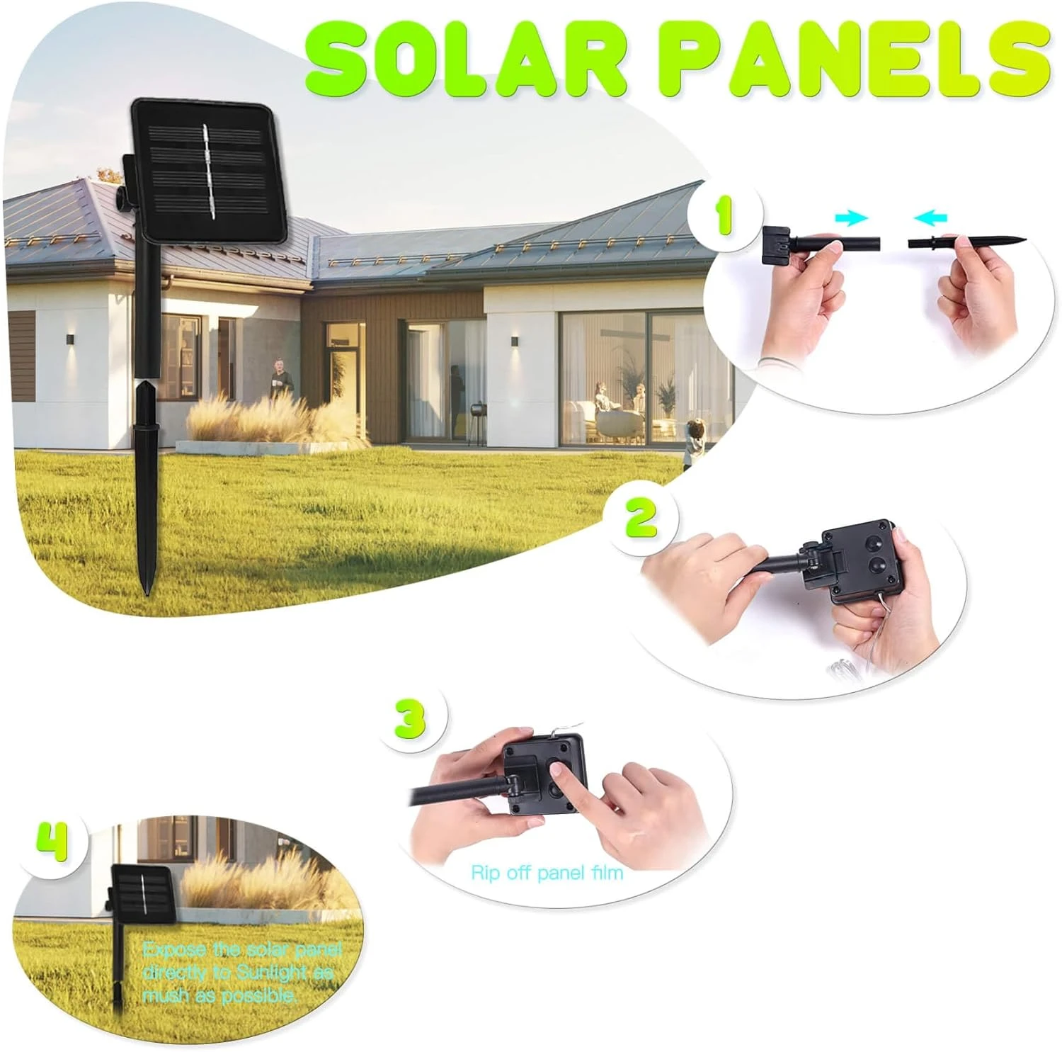 - 【Easy Installation】Aucune batterie ou un branchement nécessaire. Assurez-vous simplement que le panneau solaire est exposé au soleil et appuyez sur le bouton ON. Les lumières peuvent être enroulées autour des arbres, des clôtures, des bûches, des VR, des parterres de fleurs, des arbustes, des balcons et des terrasses comme décoration. Il peut également être utilisé avec le camping.