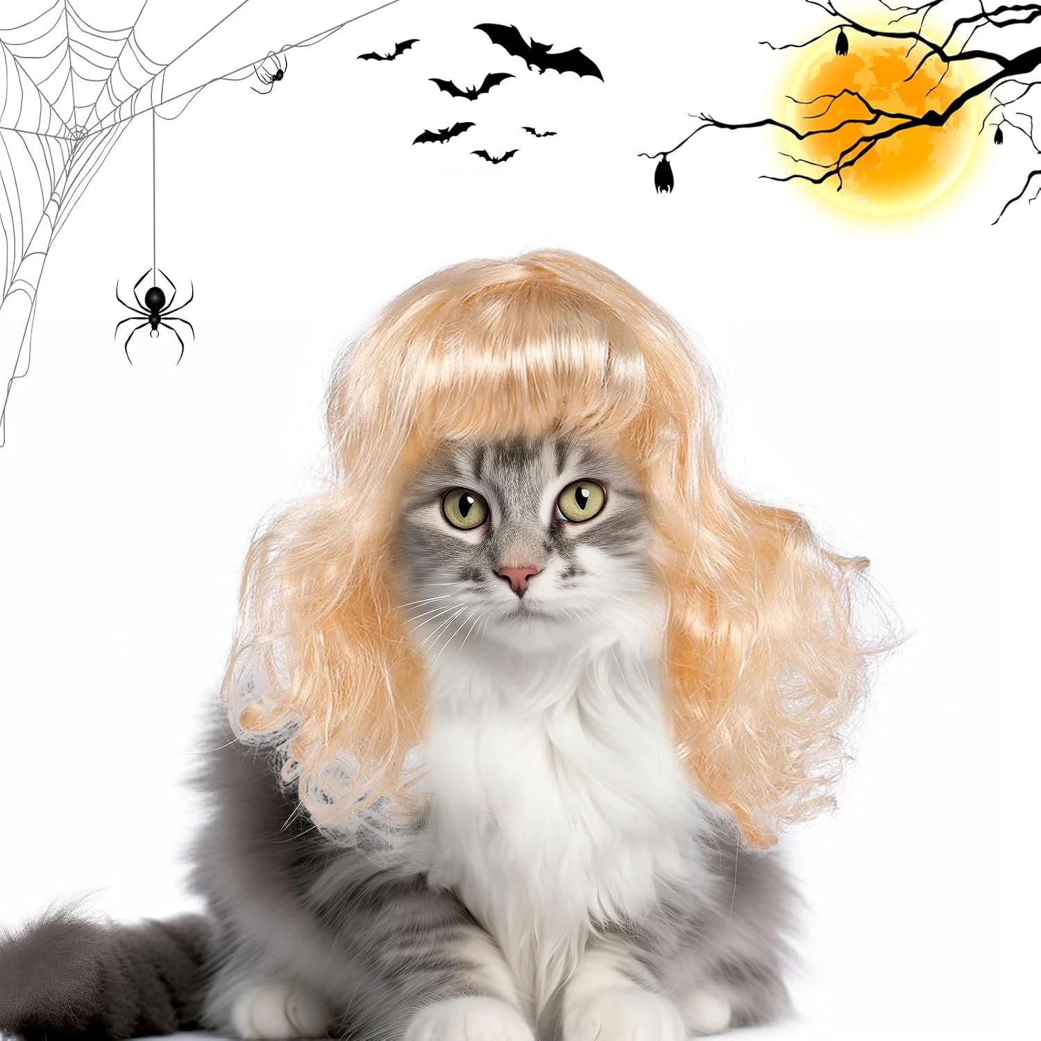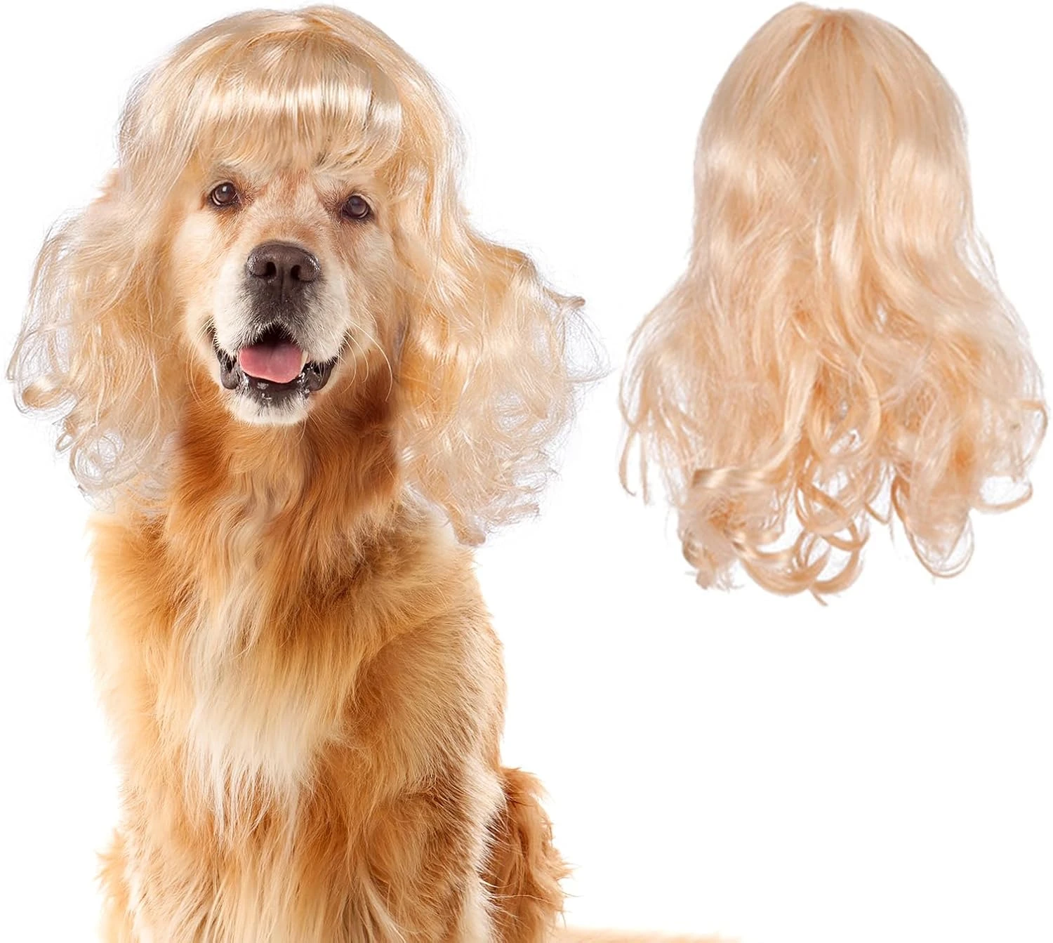 - Matériel:La perruque blonde est faite de polyester de haute qualité, doux et lisse au toucher, très léger à porter, vous pouvez donner aux animaux une variété de coiffures DIY.