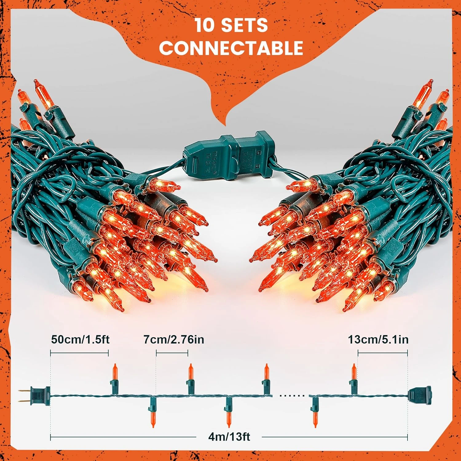 - 🎃Petites lumières de chaîne connectables: Les lumières de chaîne orange peuvent être connectées de bout en bout. Jusqu’à 10 ensembles, la gamme d’éclairage peut être étendue à 130ft. Avec cette fonction pratique, vous pouvez faire la décoration DIY en toutes occasions: Halloween, Eve party, festival fantôme, Thanksgiving, fêtes d’automne et autres décorations de vacances,Créez une atmosphère amusante et effrayante pour votre Halloween!