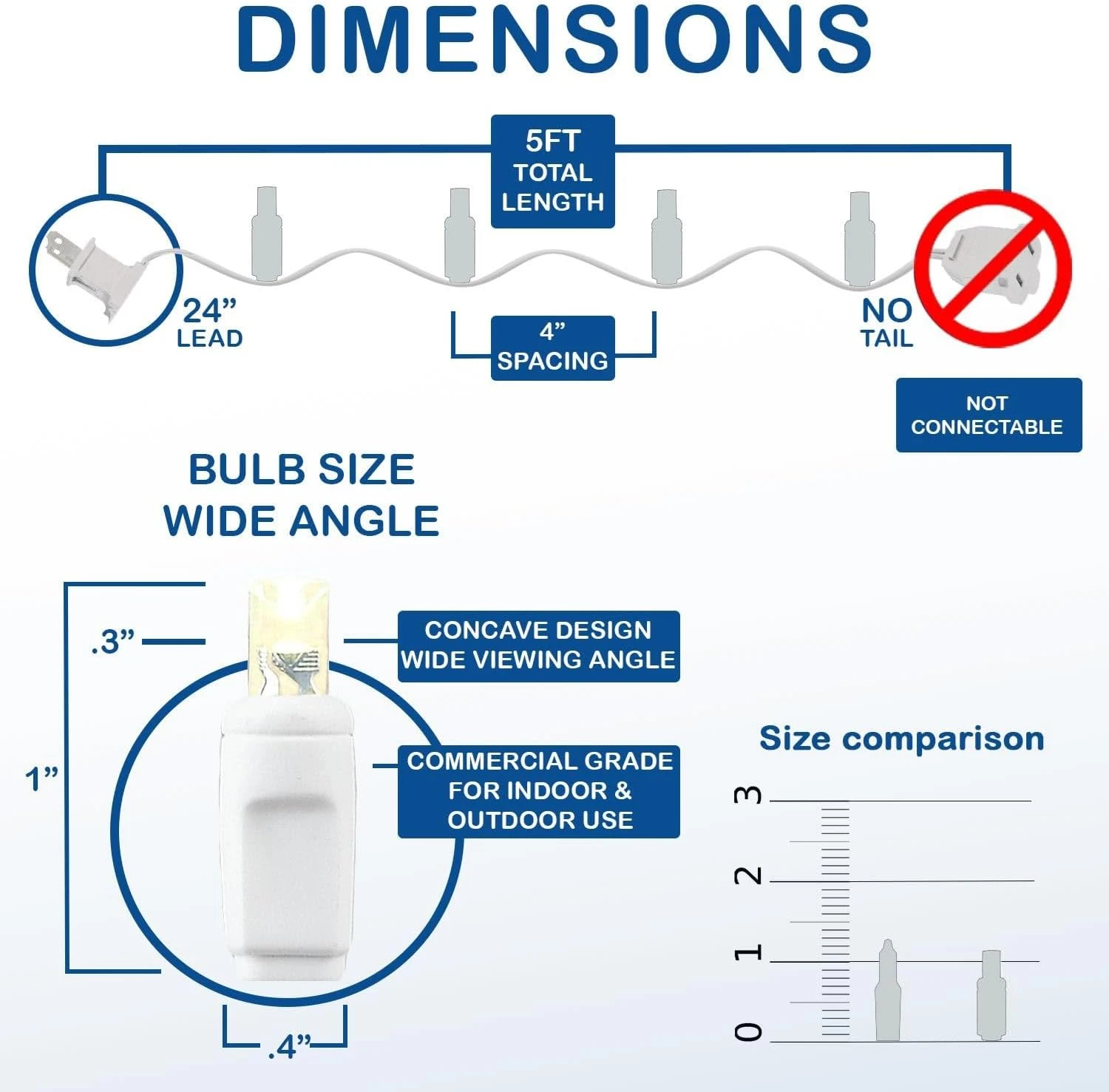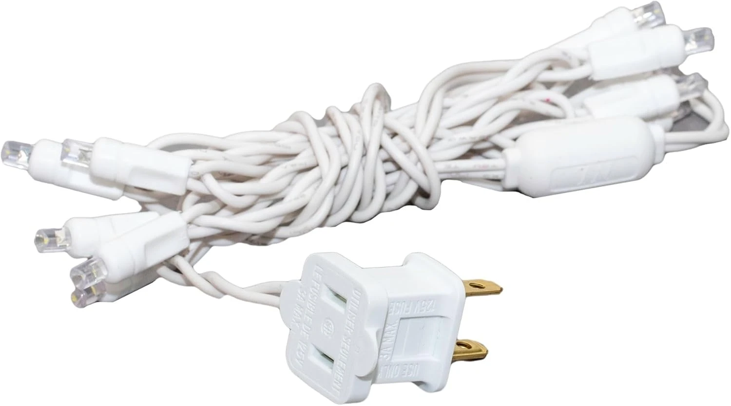 - Novelty Lights présente ce mini-ensemble de lumières de Noël White Wire LED de calibre 22 commercial qui a 10 lumières espacées de 4″ et est de 5 pieds de long. Ce mini-ensemble d’éclairage artisanal est non connectable bout à bout, ce qui signifie que chaque chaîne est faite avec seulement une prise mâle. Chaque ensemble est livré avec 2 fusibles supplémentaires pour les remplacements.