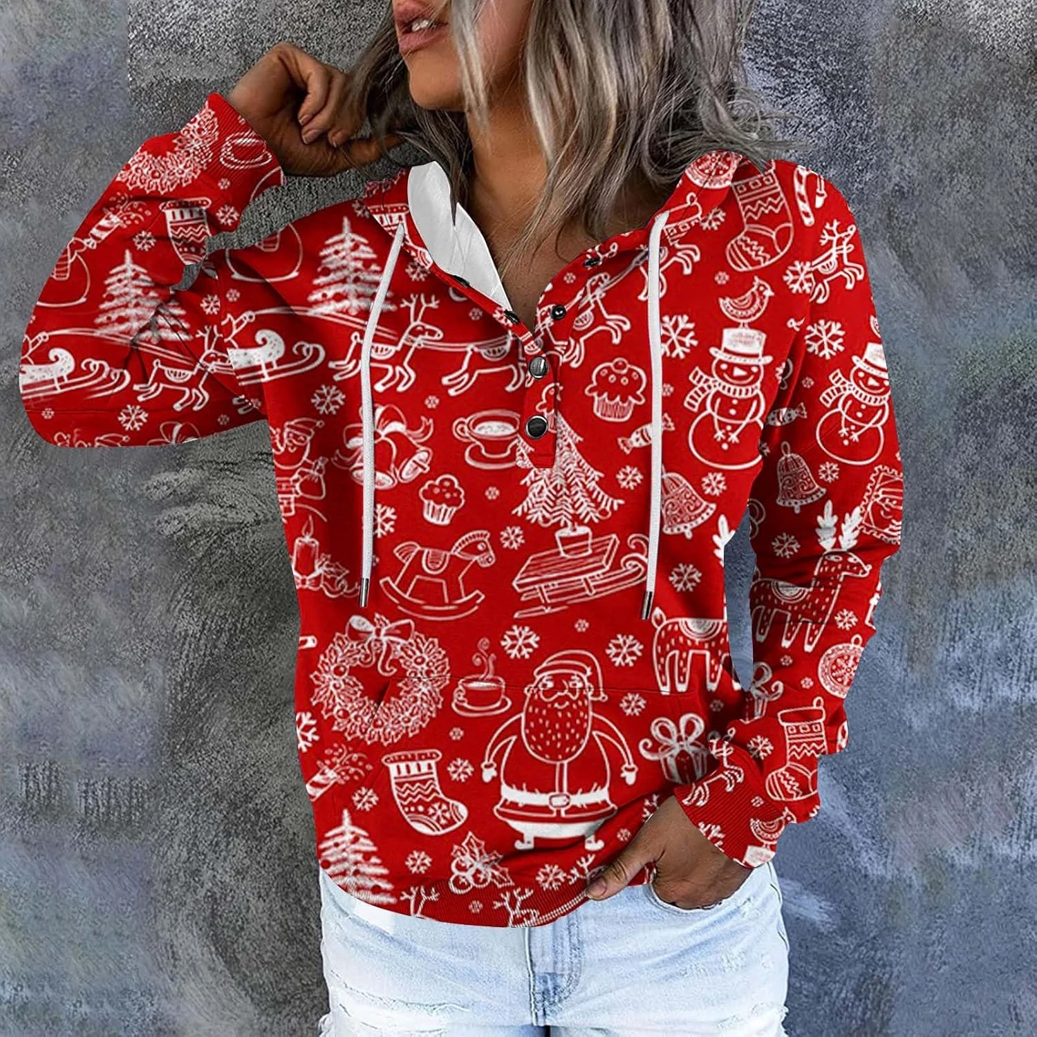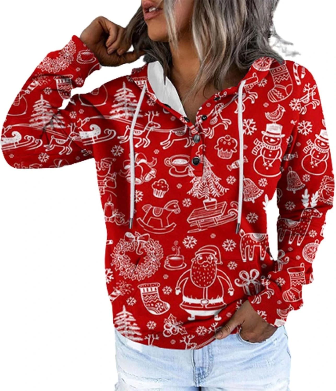 - [Material] – Le sweat à capuche de Noël pour femme est composé de 95% Polyester, 5% Spandex, le tissu est doux et confortable. Les chemises de Noël sont légères et peuvent être portées comme une usure intérieure en hiver et comme une seule usure en automne. Un bel équilibre entre confort et durabilité.