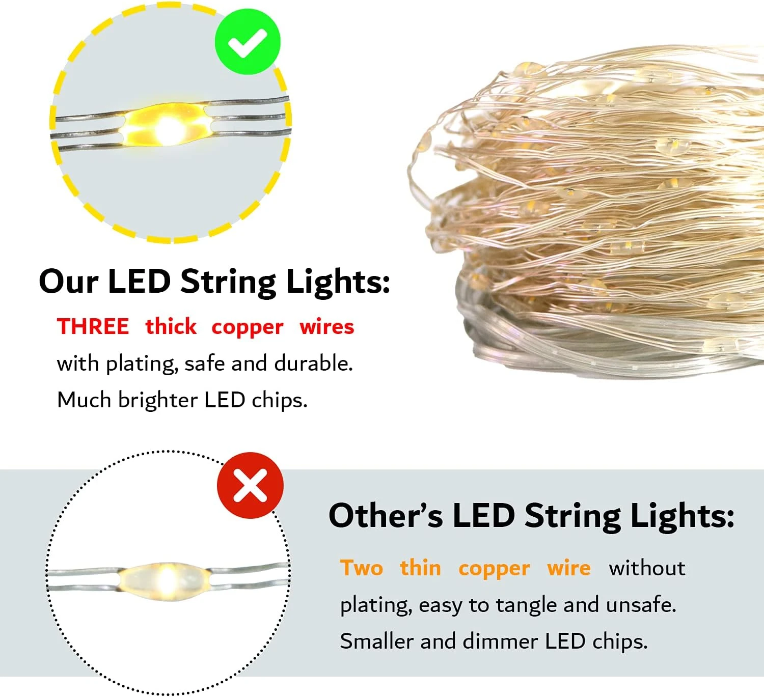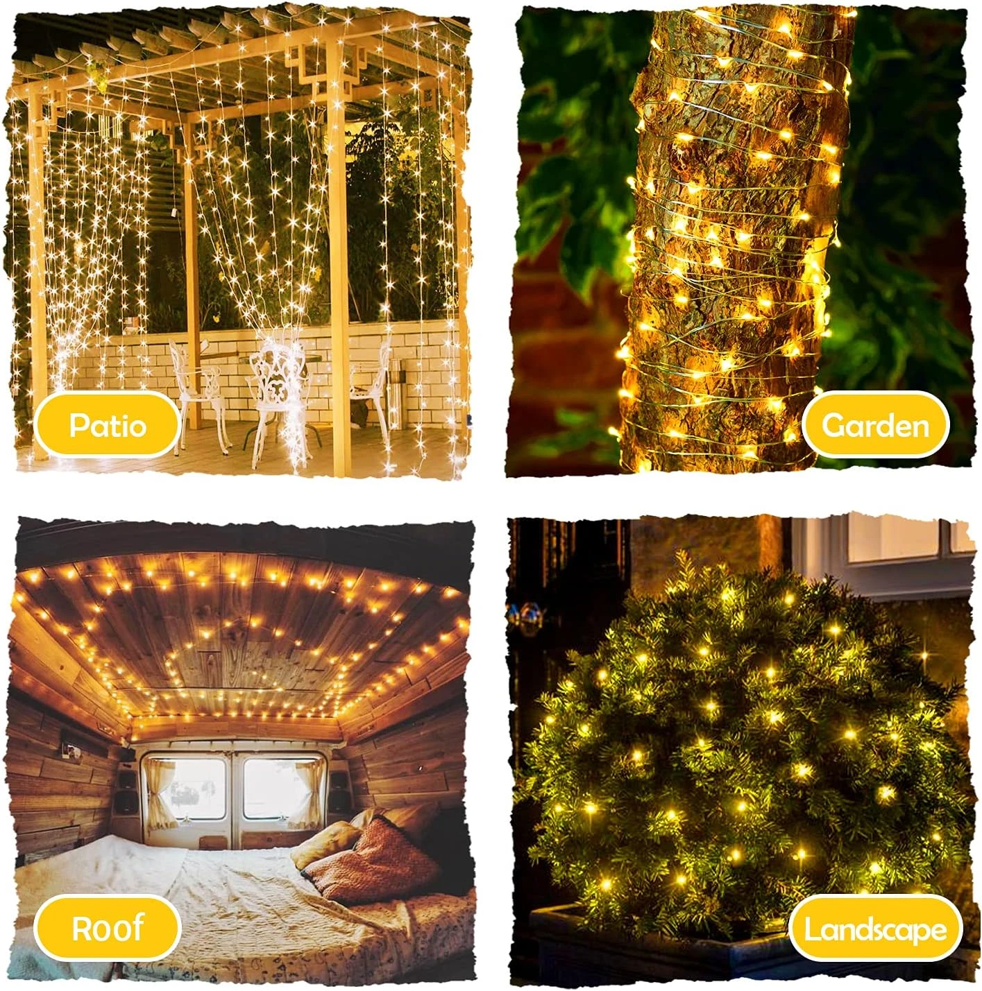 - [Utilisation intérieure et extérieure]: La lumière de fil de cuivre de fée et la partie légère sont imperméables, de sorte qu’ils peuvent être exposés à la pluie sans se soucier du temps pluvieux. (Gardez l’adaptateur secteur et l’USB loin de l’eau car ils ne sont pas imperméables!)