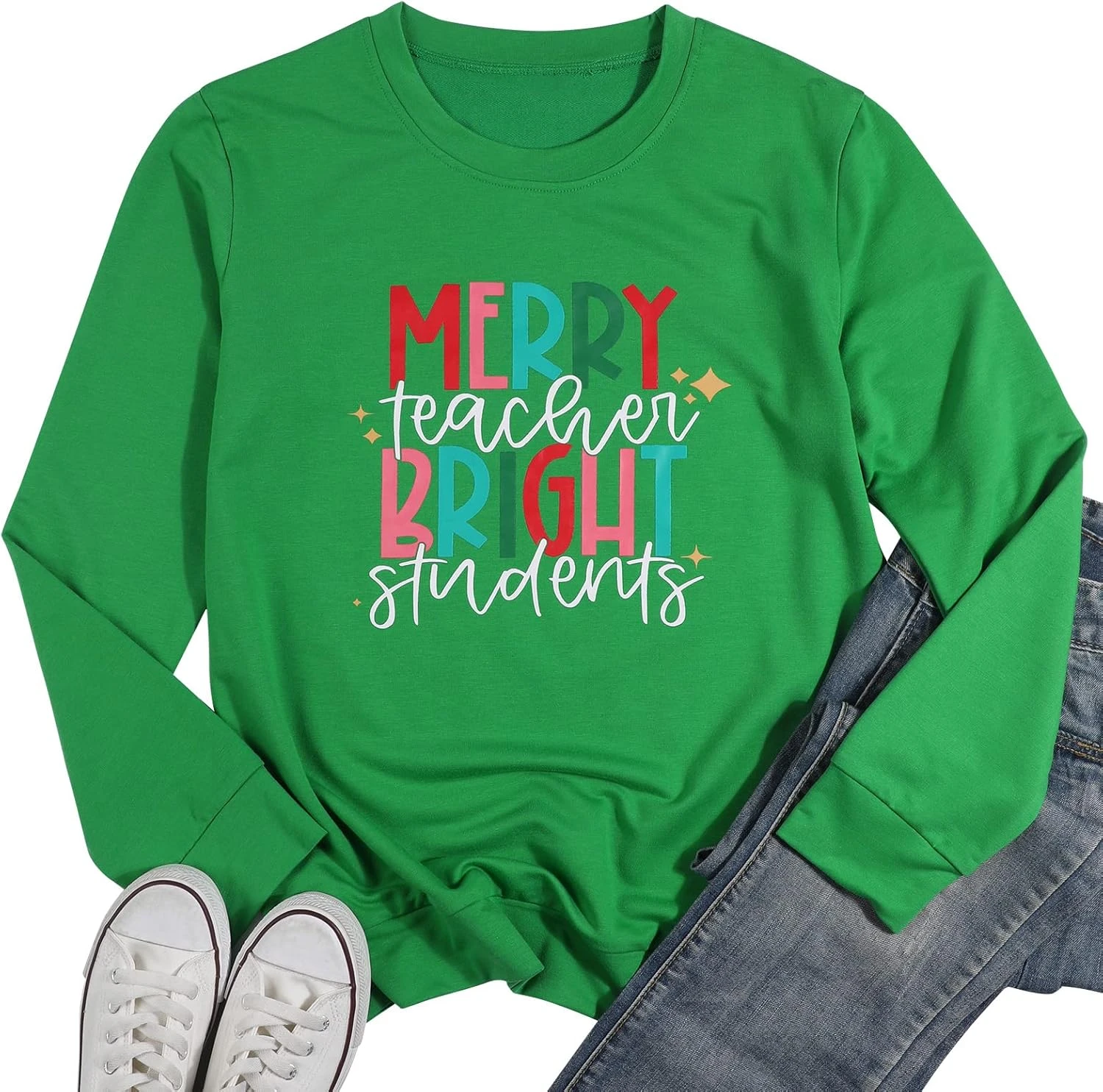 - CARACTÉRISTIQUES: Femmes Noël à manches longues pull décontracté, Joyeux Noël/Lettre d’enseignant imprimé, col rond manteau lâche. Les lettres colorées ajoutent un charme différent à cette robe! Ce haut de Noël est le cadeau parfait pour votre professeur/femme/maman/fille/collègue/ami!
