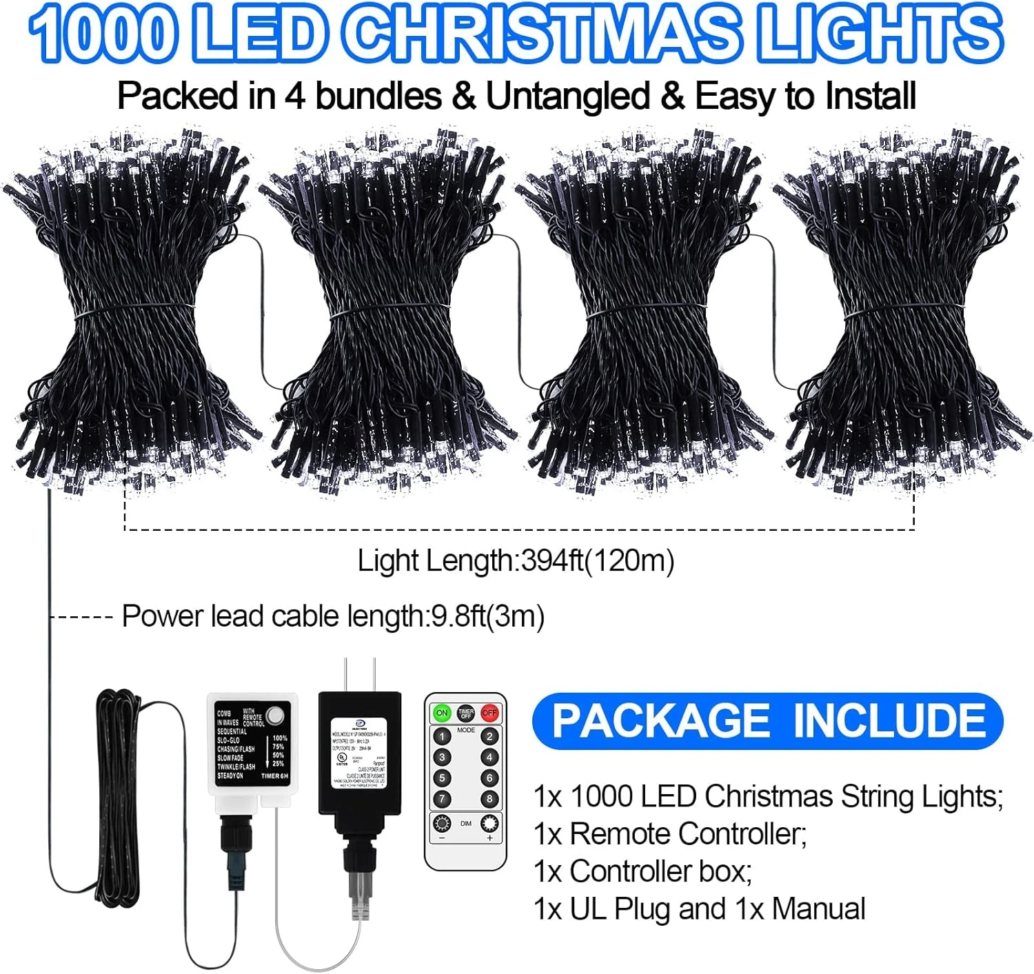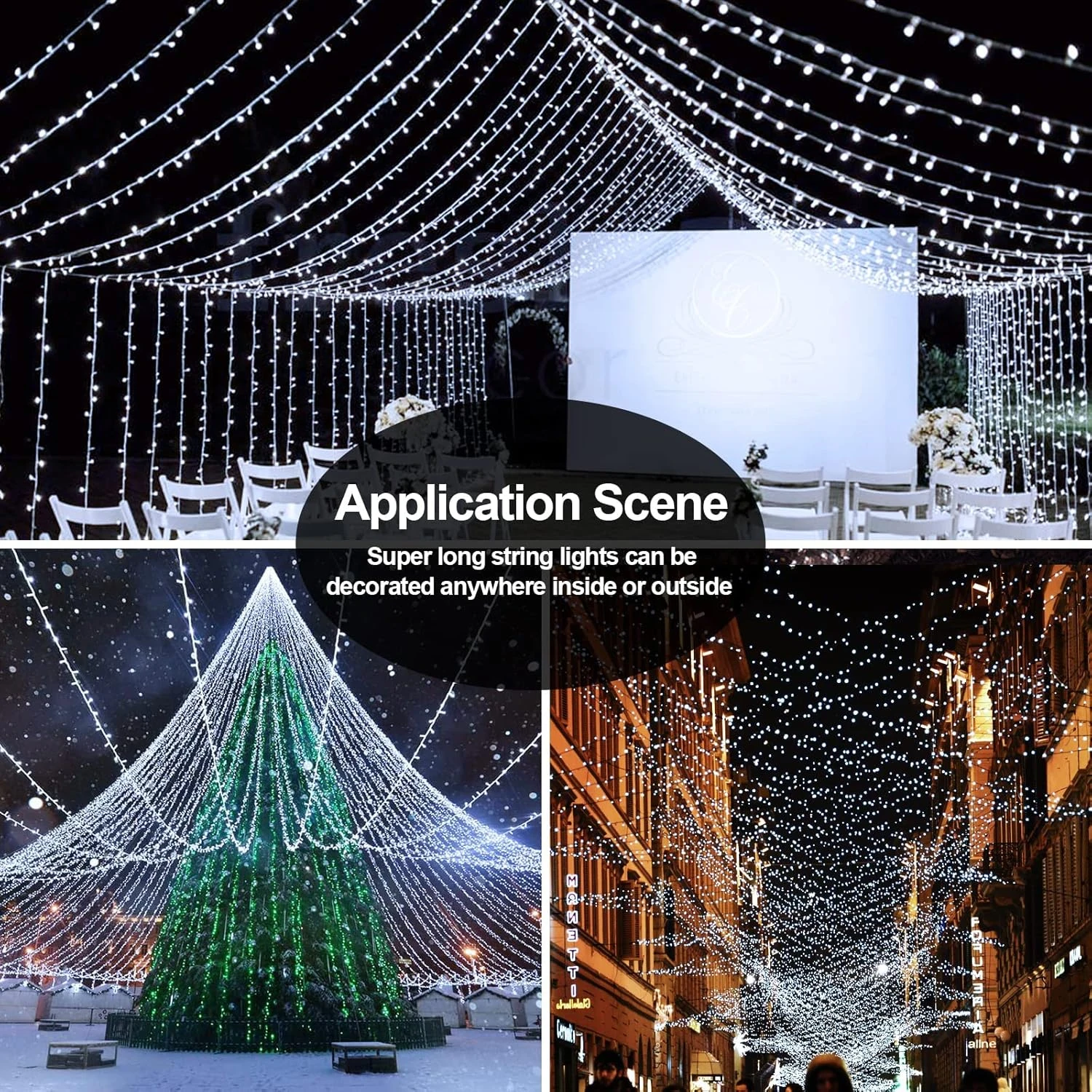 - 🌲 【 Lumières de Noël LED extra-longues 】 1000 LED La longueur des décorations de Noël est de 394 pieds et la longueur du fil de plomb est d’environ 10 pieds. Pas besoin de se dilater, super longues lumières LED pour décorer votre maison, centre commercial, mariage, fête, cour, jardin, décorations de Noël, etc.