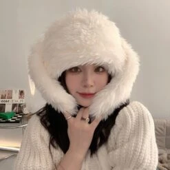 En Peluche Chapeau Pour Les Femmes Fuzzy Mignon Beanie Solide Couleur Lapin Lapin Oreilles Chapeau Y2K Hiver Froid Météo Noël Halloween