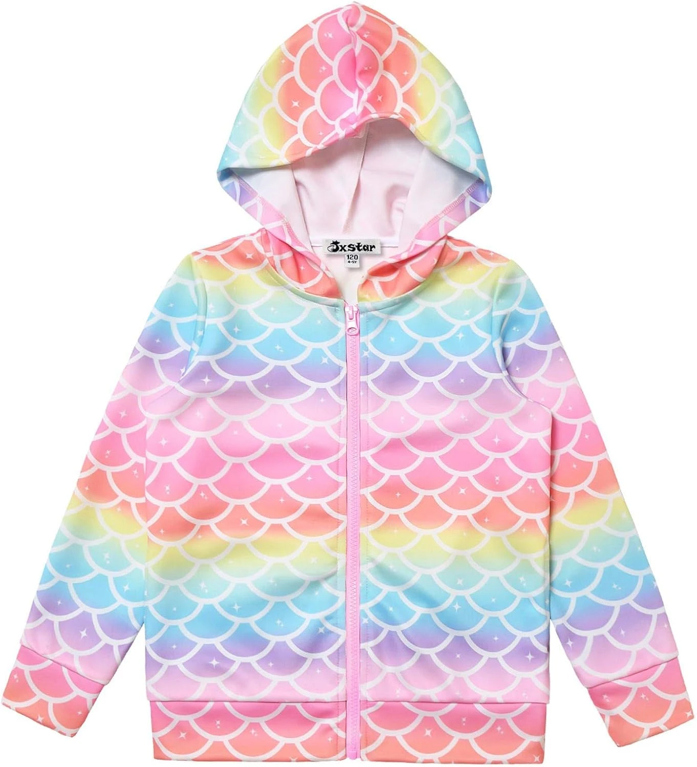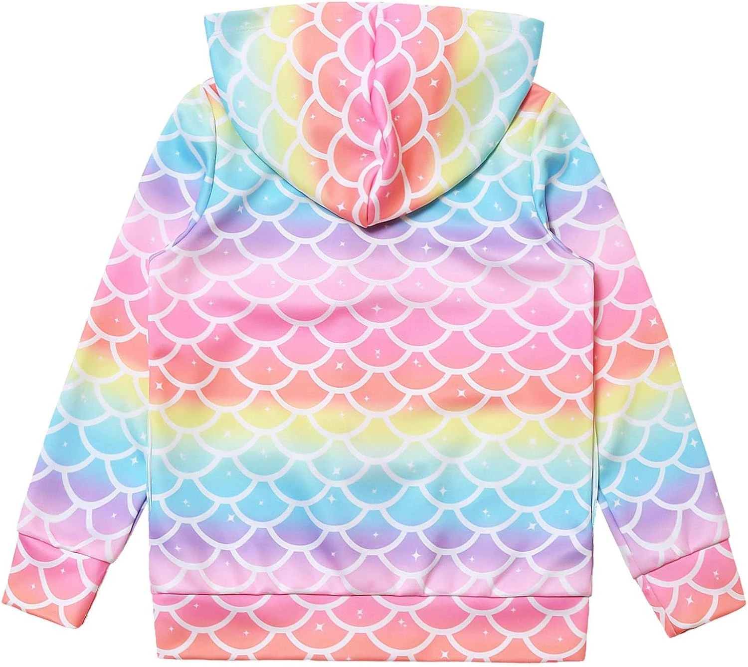 - Sweat à capuche zippé pour les filles 7 16, poches sur le côté, jolis motifs à l’échelle arc-en-ciel