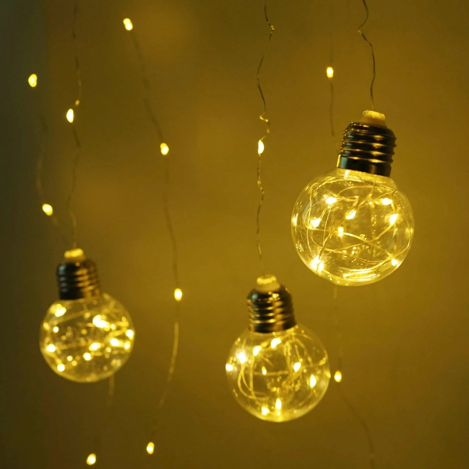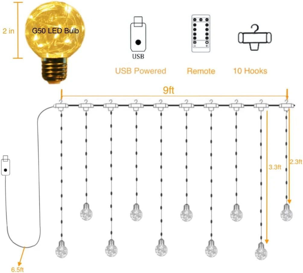 - 【Unique Design】: Boule de souhaits avec conception de fil de cuivre: 10 ampoules de style Edison remplies de guirlandes lumineuses à led, suspendues à des fils de rideau en cuivre de couleur argent. Ajoutez une atmosphère relaxante et paisible à votre chambre.