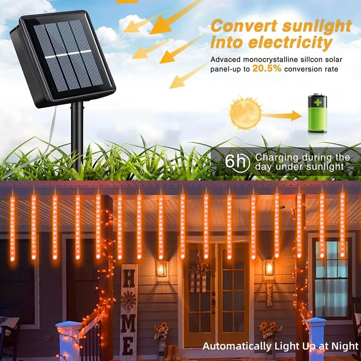 - Energy Efficient Solar Powered Meteor Lights: Falling rain lights sont alimentés à l’énergie solaire et disposent d’une batterie rechargeable 1XAA 1.2V 1200mAh Ni-MH pour une utilisation durable. Panneau solaire entièrement réglable pour correspondre à la meilleure direction du soleil pour une meilleure charge pendant la journée. Un capteur photo intégré s’allume automatiquement la nuit pour un éclairage sans tracas, une faible consommation d’énergie et des économies d’énergie.